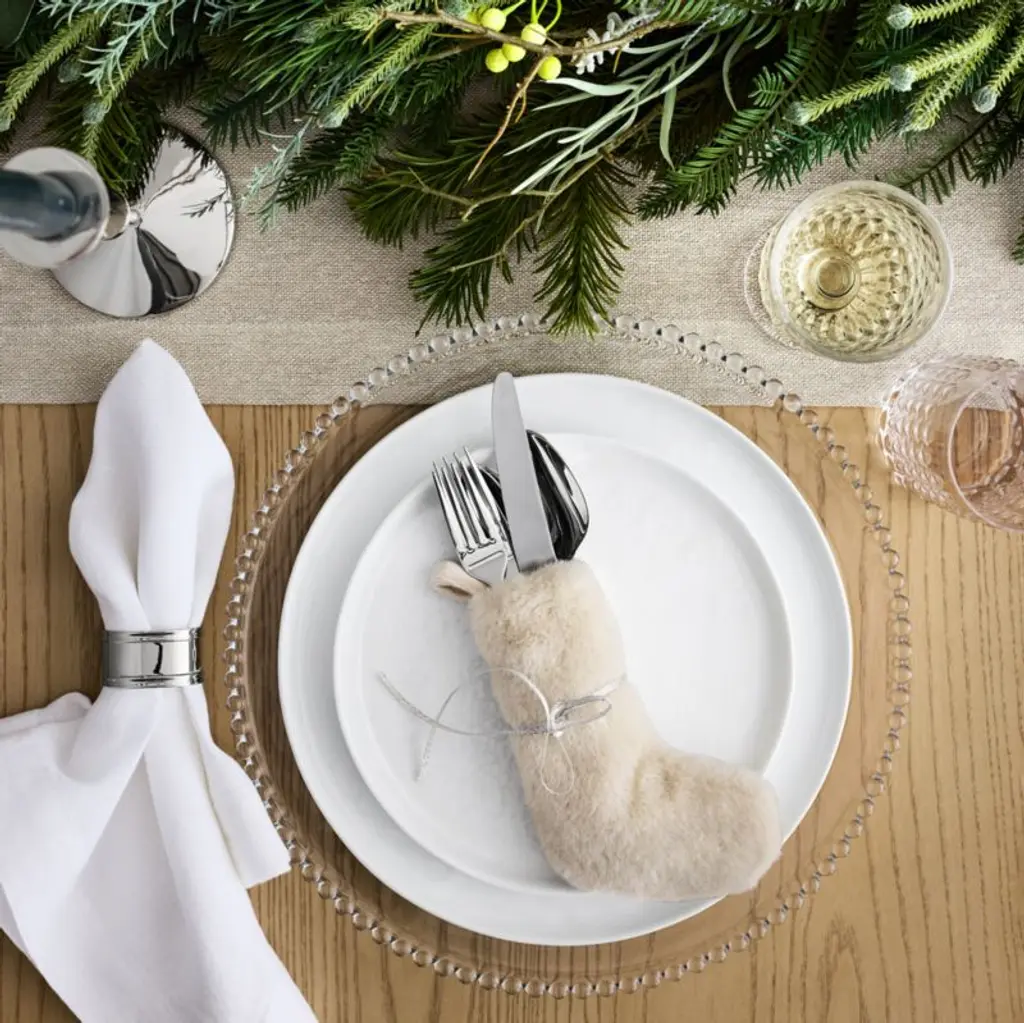 Eden's beaded rim adds sparkle and classic elegance to place settings. The clear glass charger combines beautifully with dinnerware or can be used alone as a platter. To set a table with extra shimmer, layer with the Eden glass salad plate.