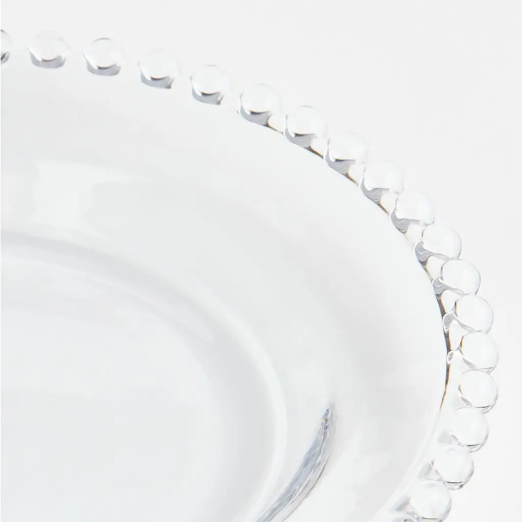 Eden's beaded rim adds sparkle and classic elegance to placesettings. The clear glass salad plate combines beautifully with dinnerware or can be used alone as an appetizer or dessert plate. To set a table with extra shimmer, layer with the Eden glass charger.