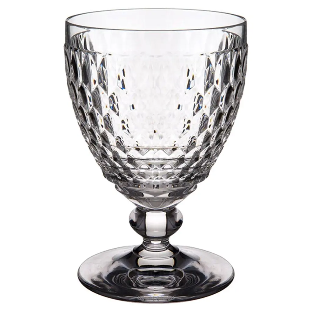 A superb addition to an elegant and classic dining room, thanks to the exquisite texture of diamonds and vertical elements that grace its surface, this set of six stem glasses will imbue any occasion with refined charm. It can be paired with the Edinburgh 358 Bottle for a complete look.