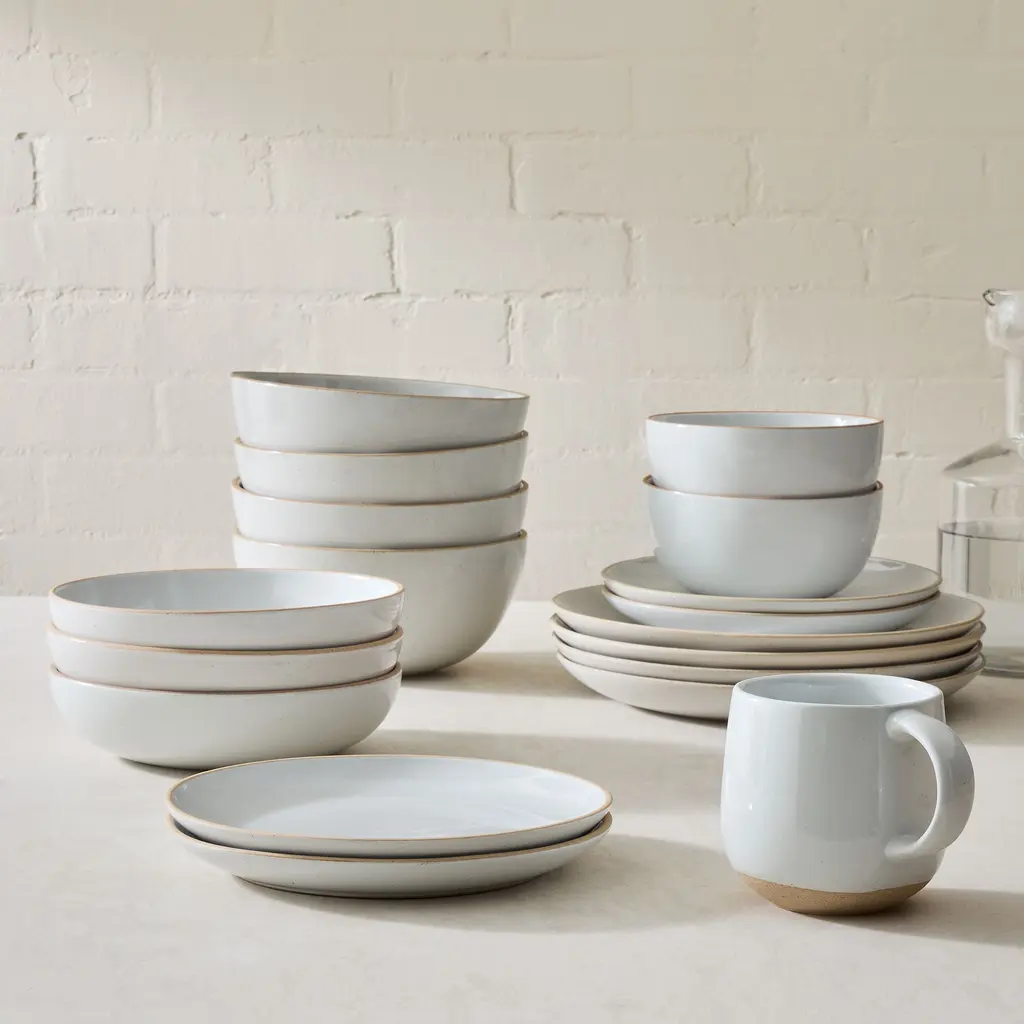 We find that when it comes to setting the table, the beauty is in the mix. This dinnerware set pairs the scalloped silhouettes of the Mallorca plates with the dynamic glaze and organic shape of the Eivissa cereal bowl for a natural pairing ready for signature appeal at your table.