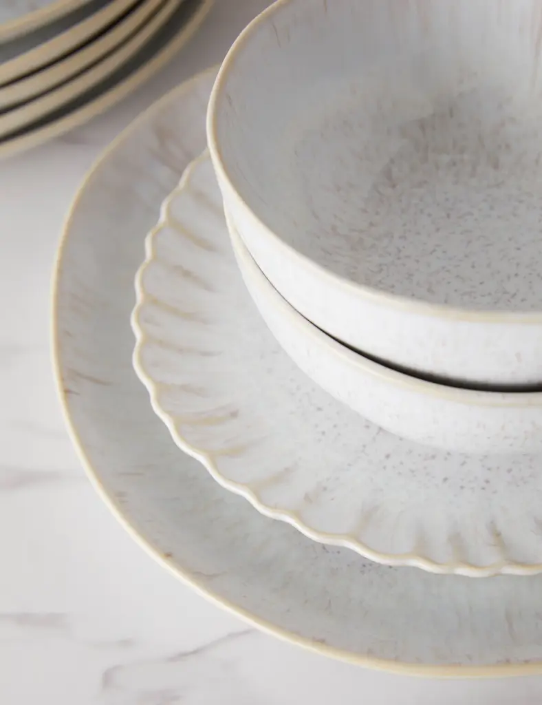 We find that when it comes to setting the table, the beauty is in the mix. This dinnerware set pairs the scalloped silhouettes of the Mallorca plates with the dynamic glaze and organic shape of the Eivissa cereal bowl for a natural pairing ready for signature appeal at your table.