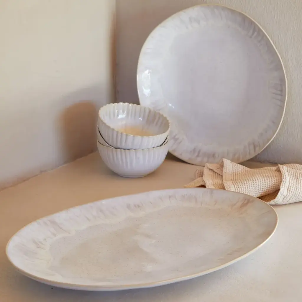 Discover our organic Eivissa collection. The natural curves are enhanced by reactive glazes creating perfectly imperfect patterns of beige sand and sea blue on the interior. Handcrafted pieces inspired by the sea and the sand… perfect for any table occasion. Organically shaped and artfully glazed, no two pieces will ever look the same. All pieces are available in sand beige and sea blue. The new form-fitting oak trivets for the stoneware bakers are for tableside serving.