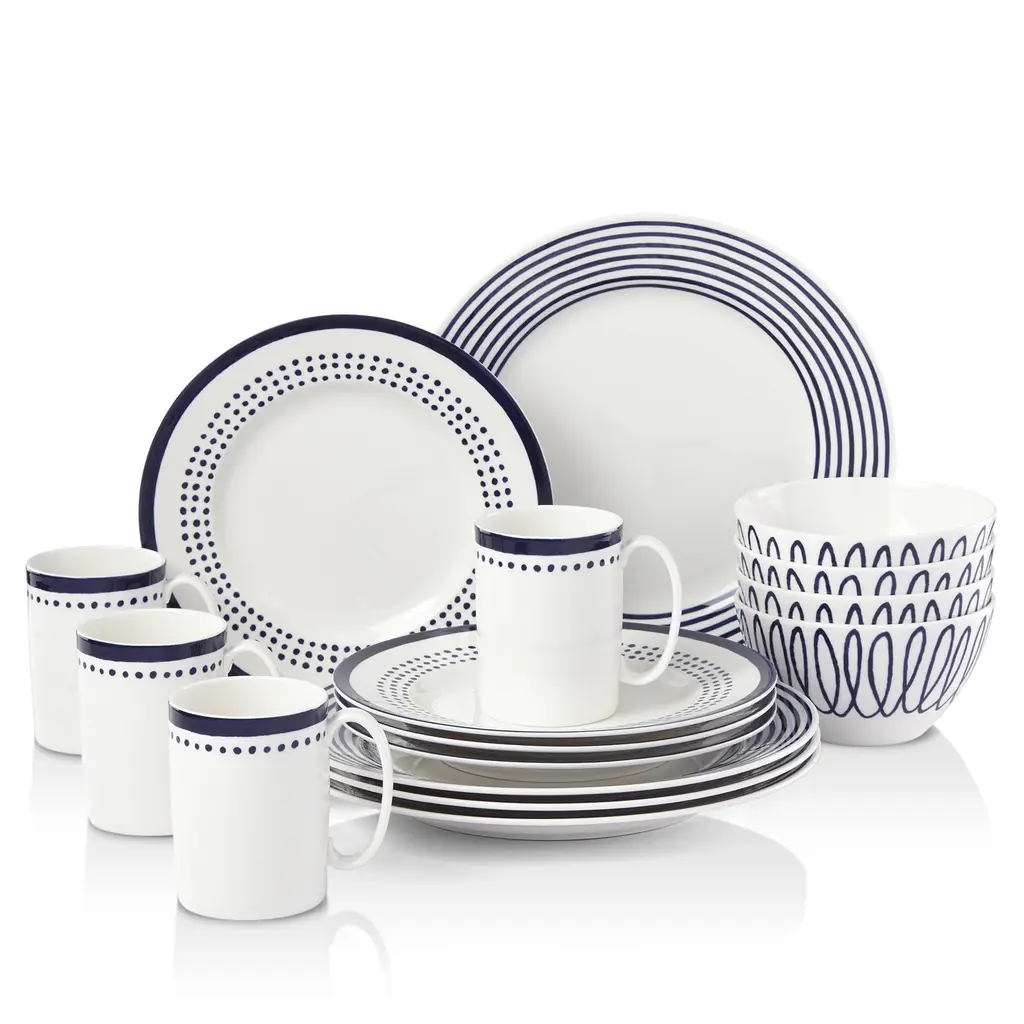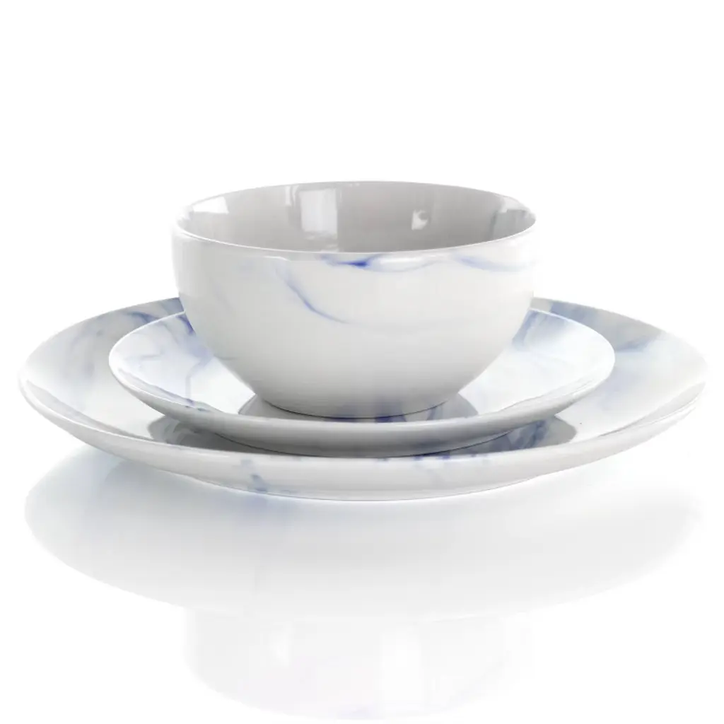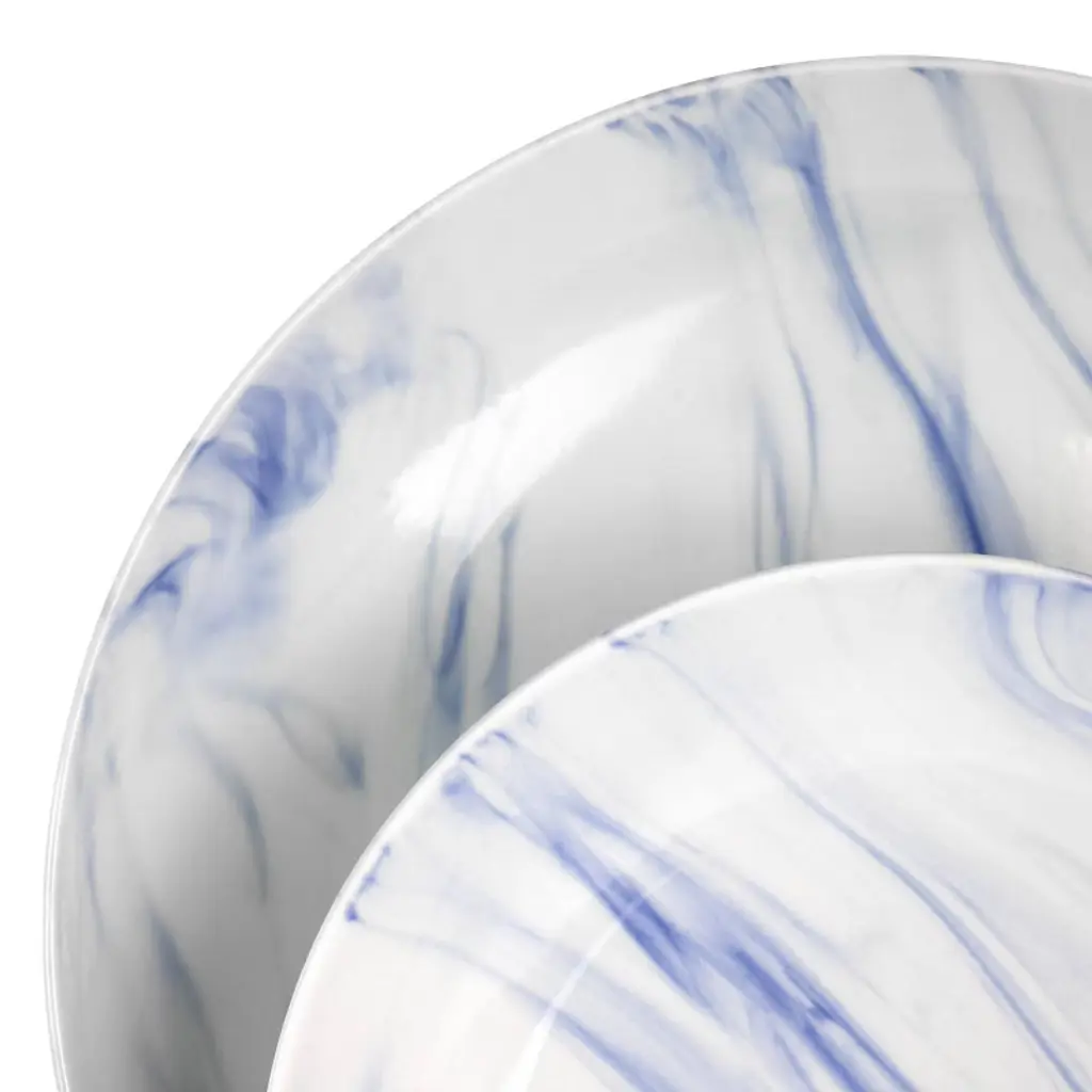 Elama 16pc Stoneware Fine Marble Dinnerware Set Blue/white Blue/white: Microwave & Dishwasher Safe, Service For 4