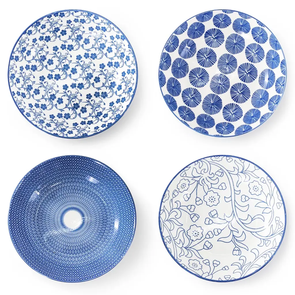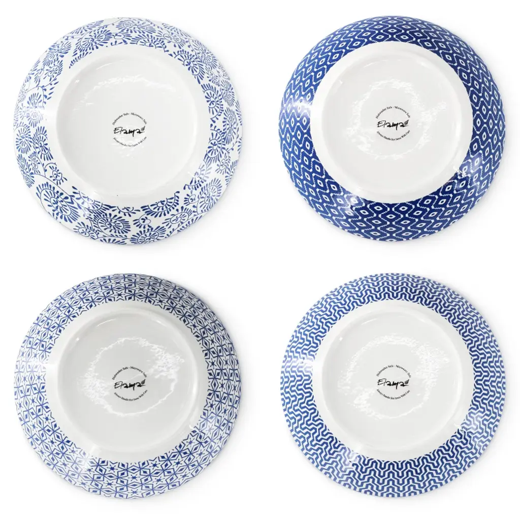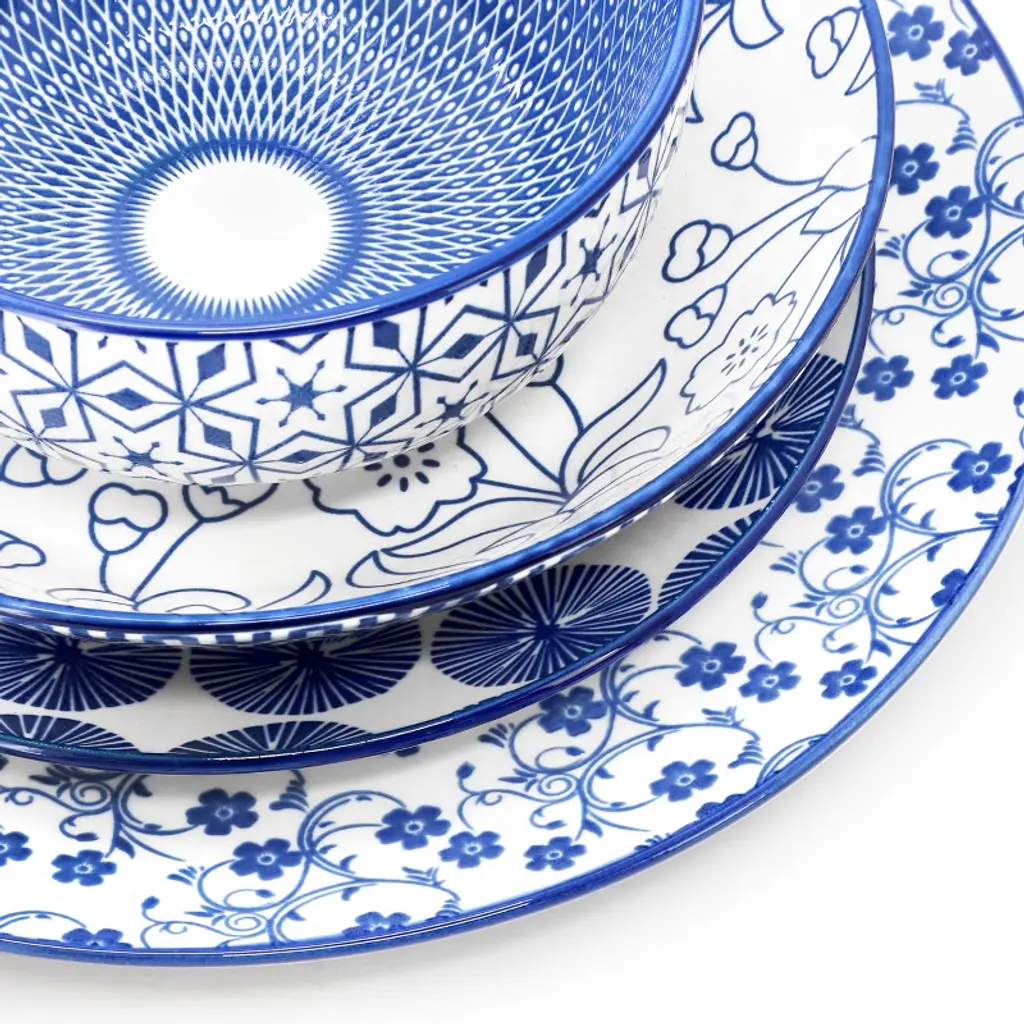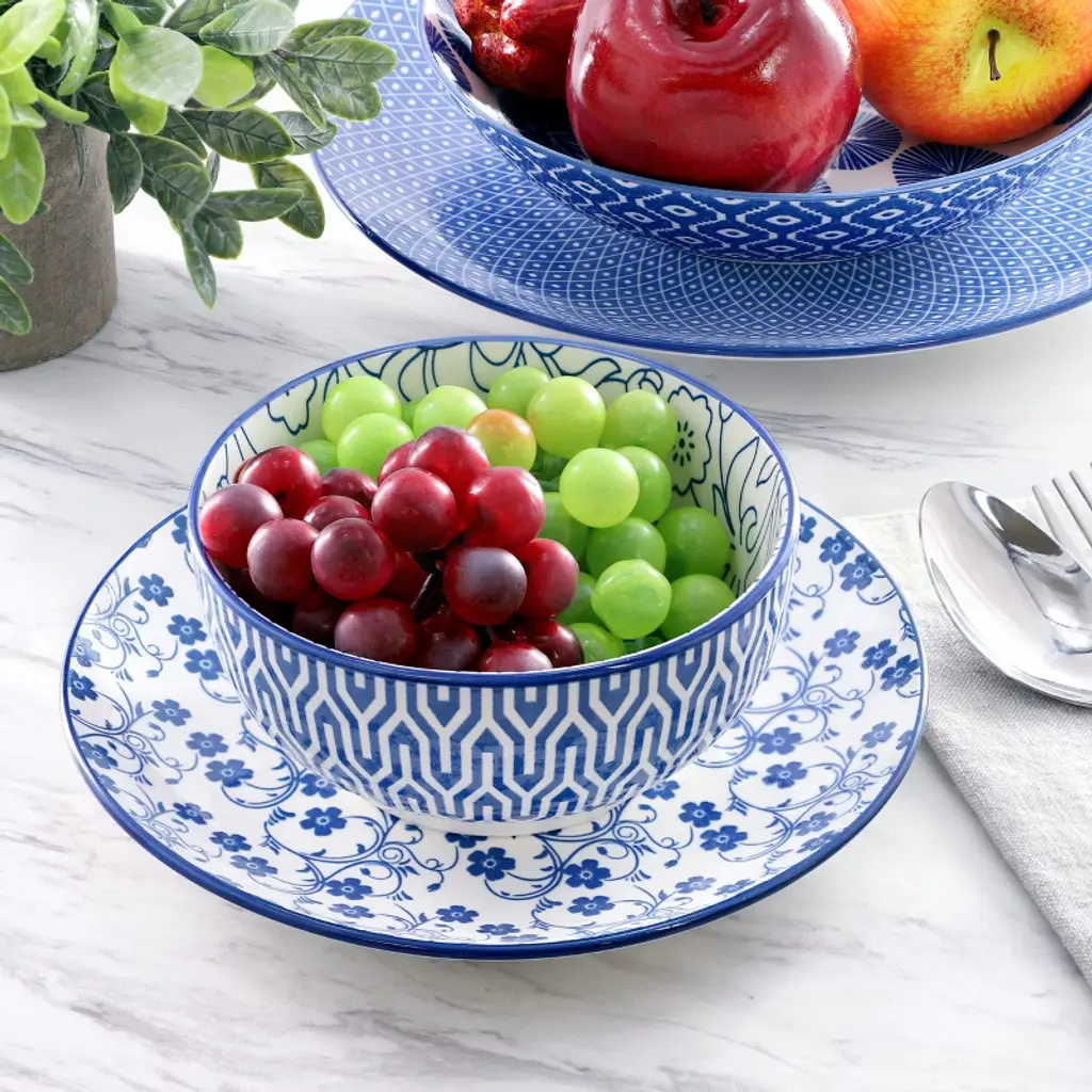 Elama Aurora 16 Piece Assorted Porcelain Double Bowl Dinnerware Set In Blue
