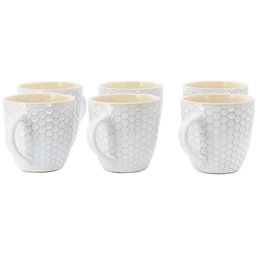 Elama Honeycomb 6 Piece 15 Ounce Mug Set In White