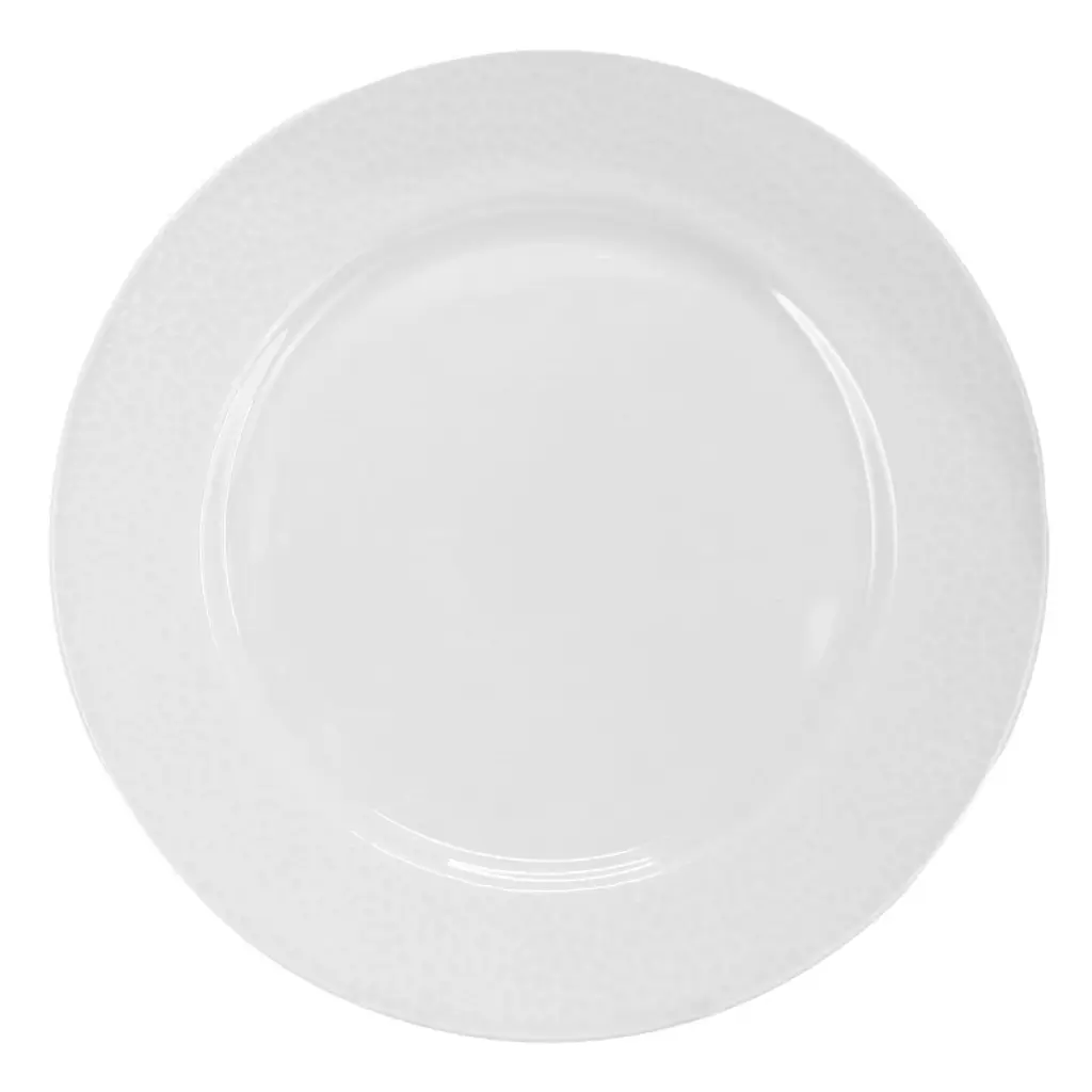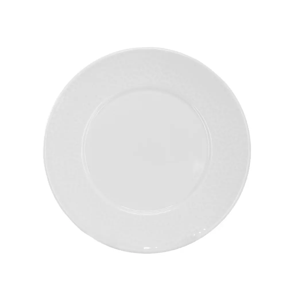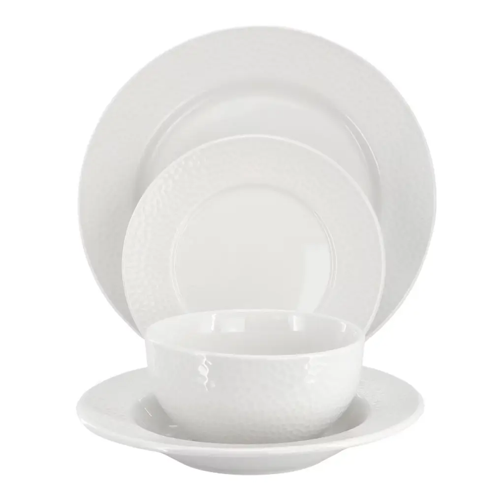 Elama Soyer 16 Piece Textured Design Double Bowl Porcelain Dinnerware Set In White