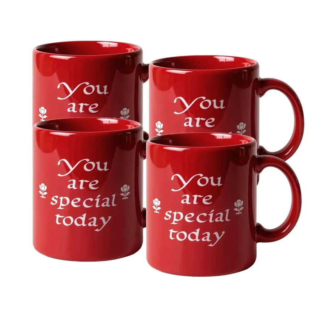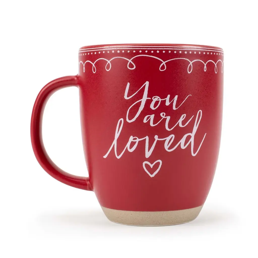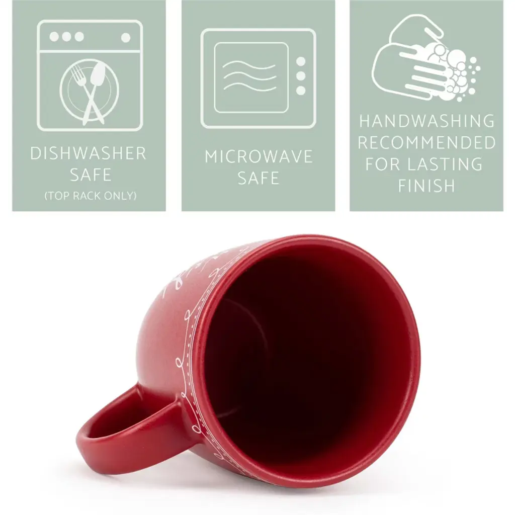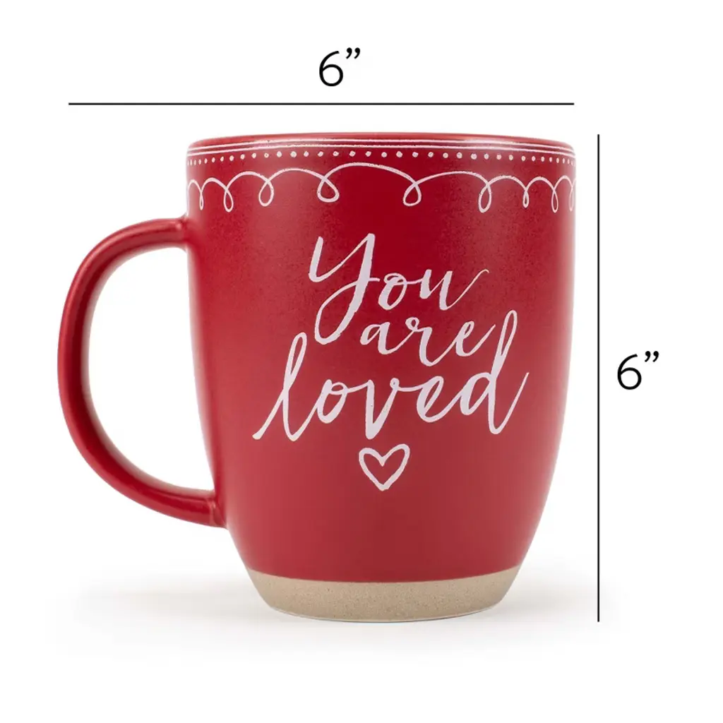 Elanze Designs Loved Raw Clay Bottom Red 16 Ounce Ceramic Christmas Coffee Mugs Set Of 4