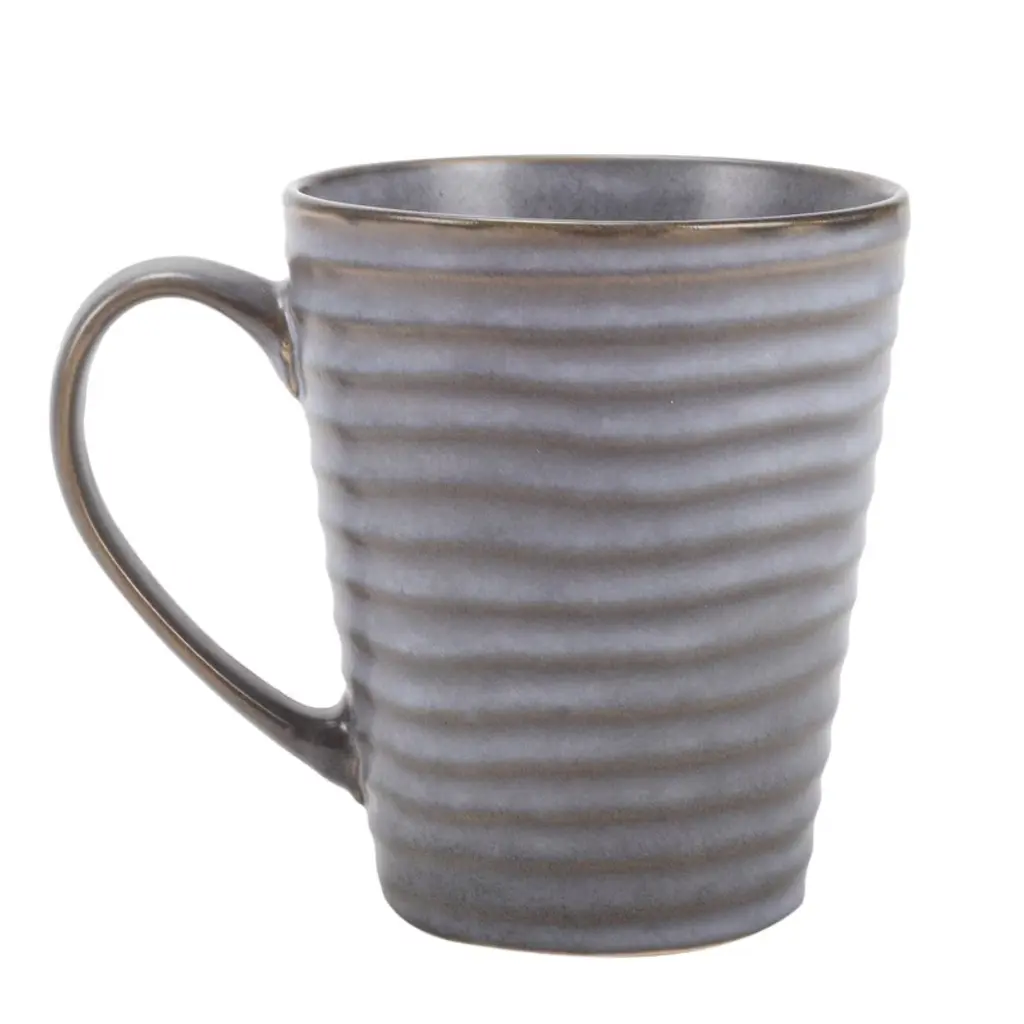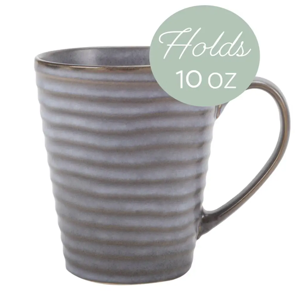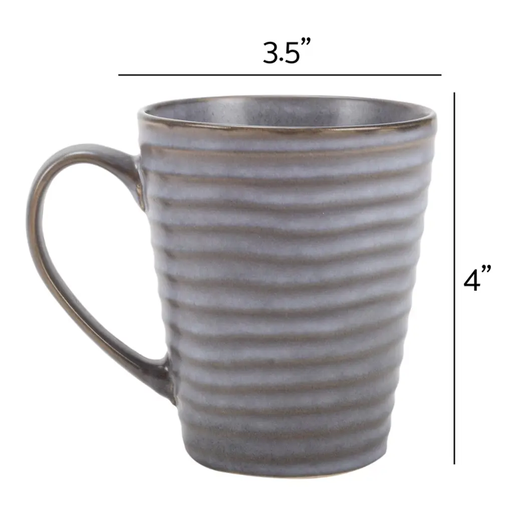 Elanze Designs Modern Chic Ribbed Ceramic Stoneware Dinnerware Mugs Set Of 4 - Slate Grey
