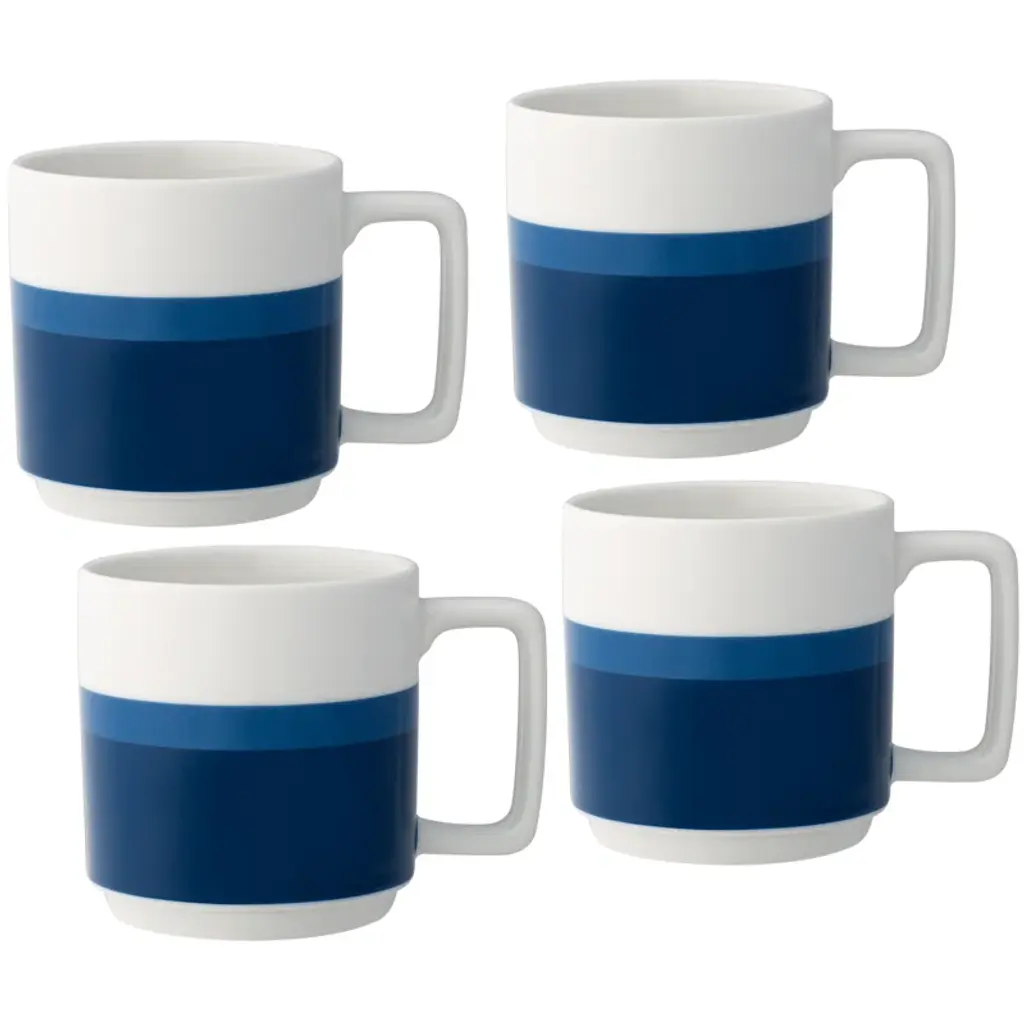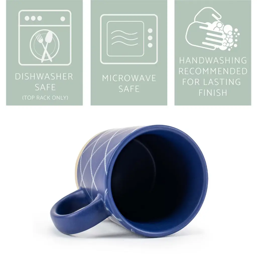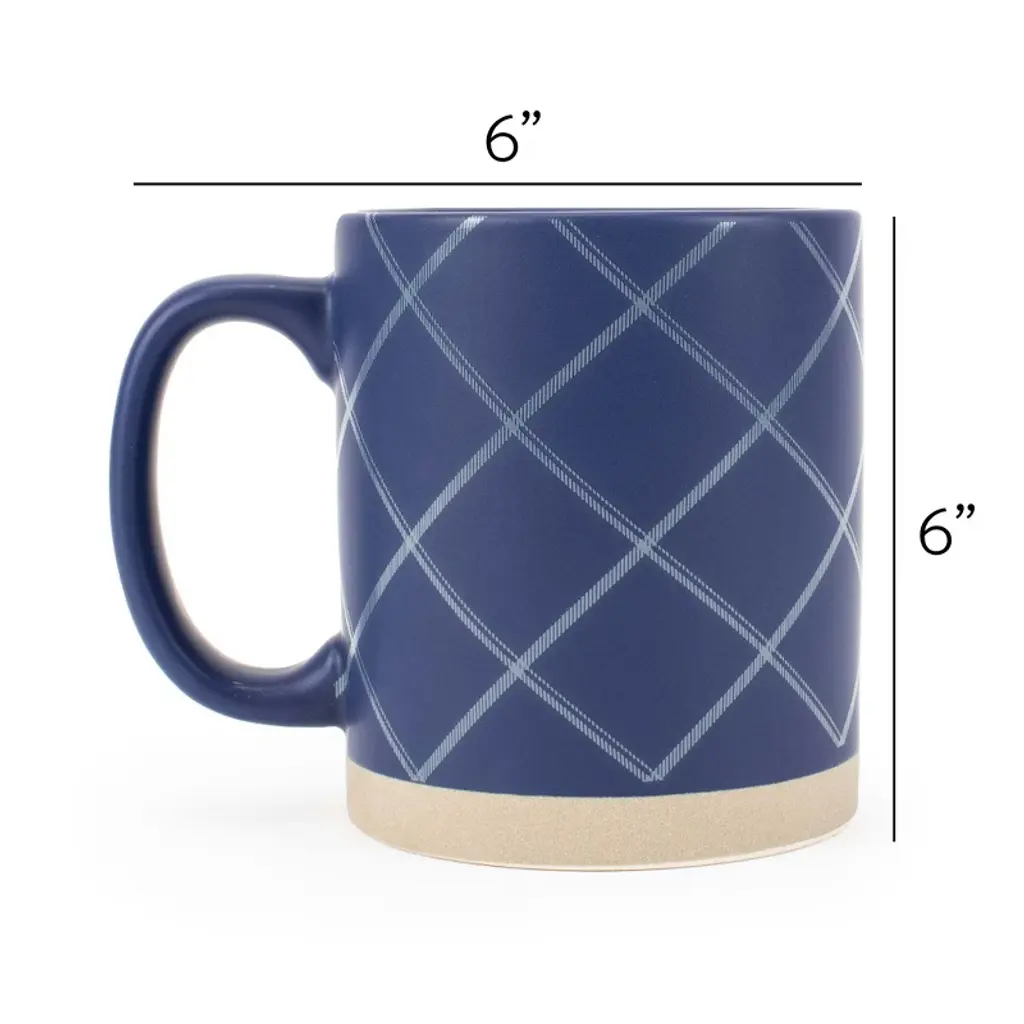Elanze Designs Modern Plaid Raw Clay Bottom Navy Blue 16 Ounce Ceramic Coffee Mugs Set Of 4