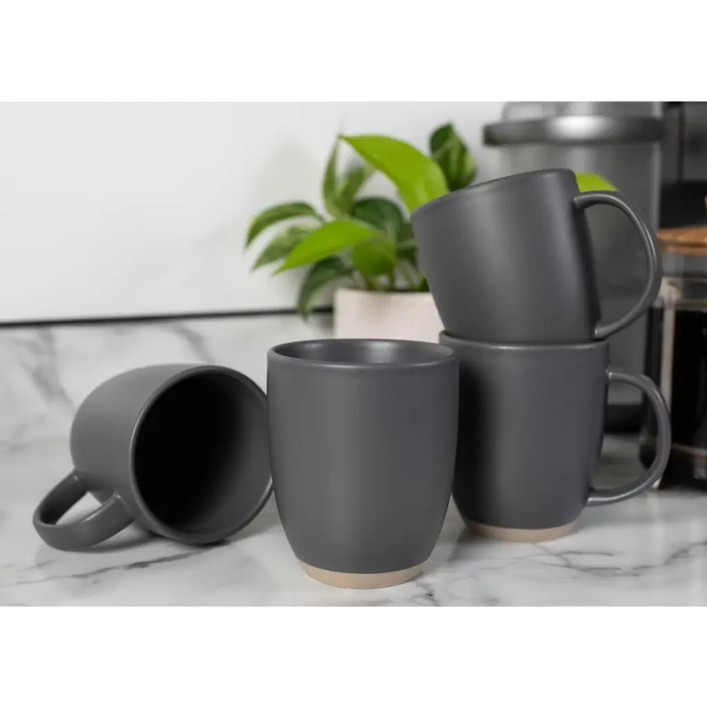 Elanze Designs Raw Clay Bottom Charcoal Grey 13 Ounce Ceramic Coffee Mugs Set Of 4