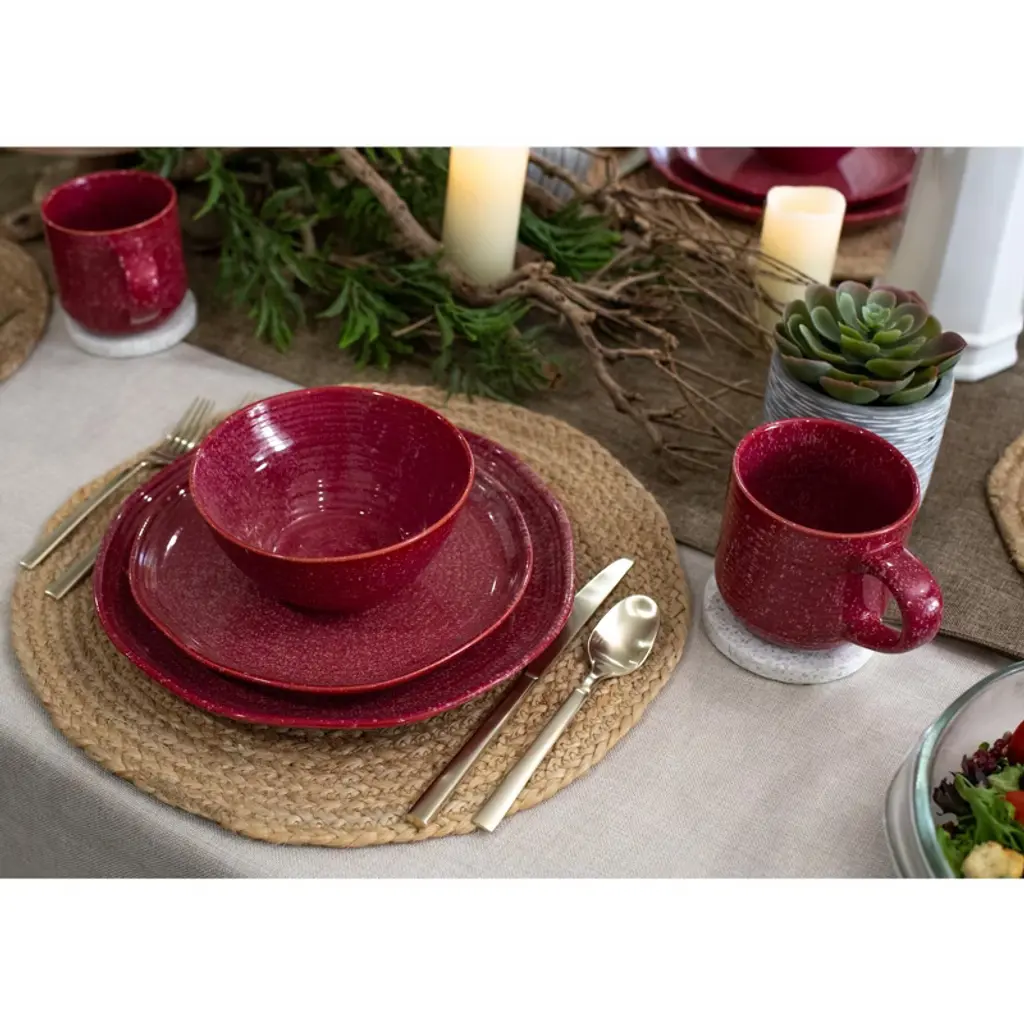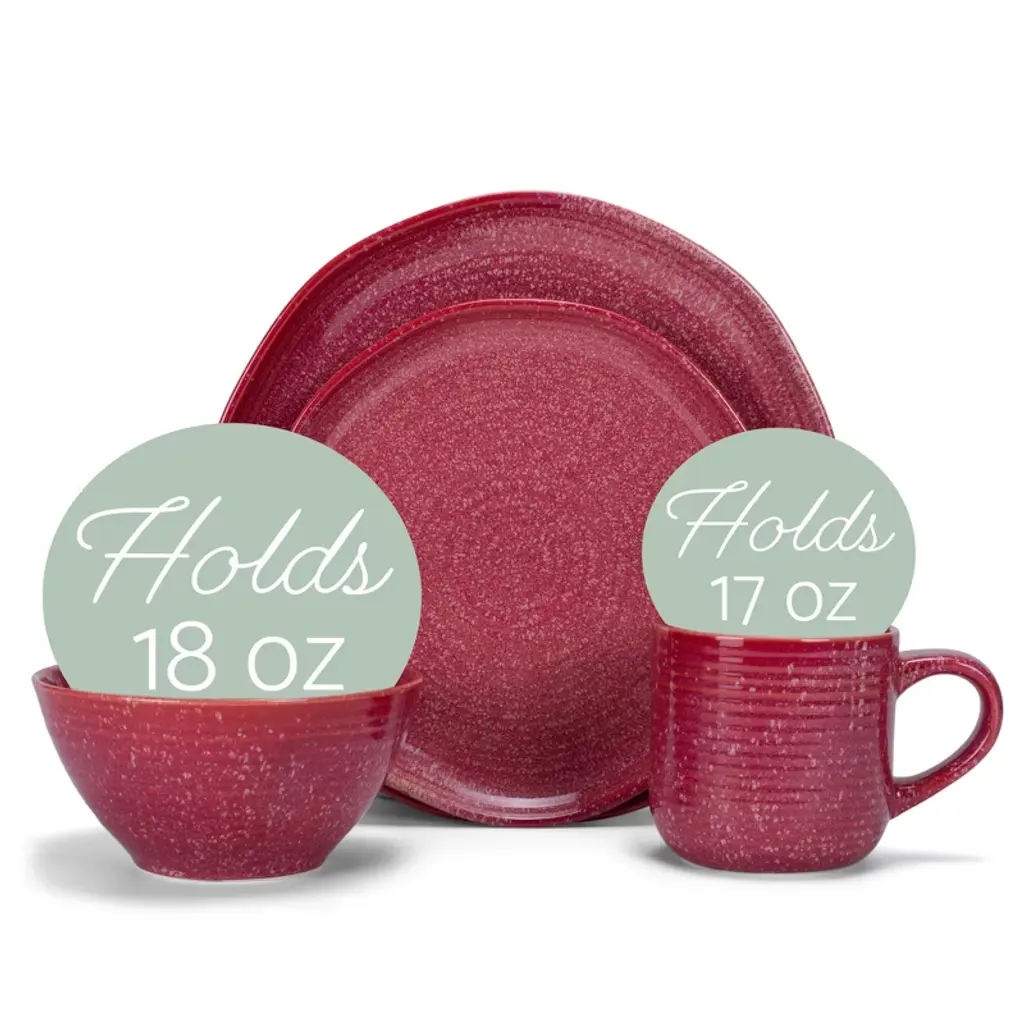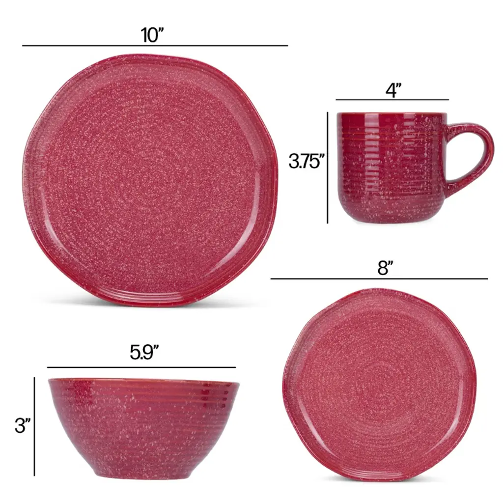 Elanze Designs Reactive Ceramic Dinnerware 16 Piece Set - Service For 4, Maraschino Red