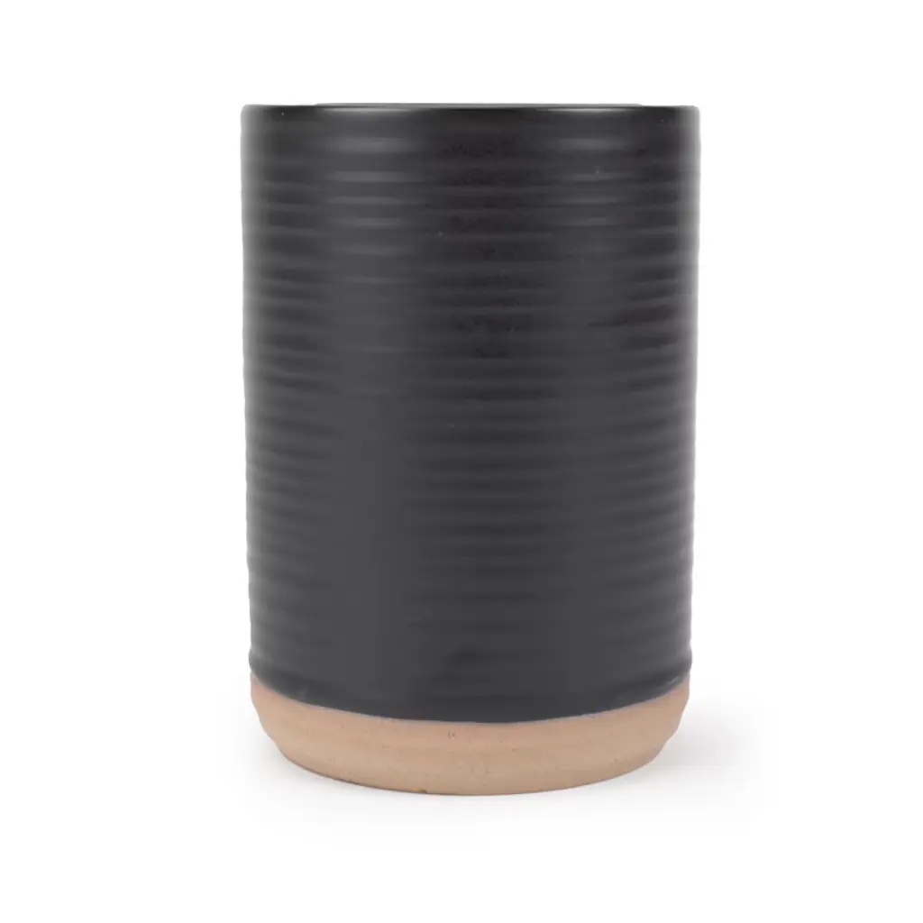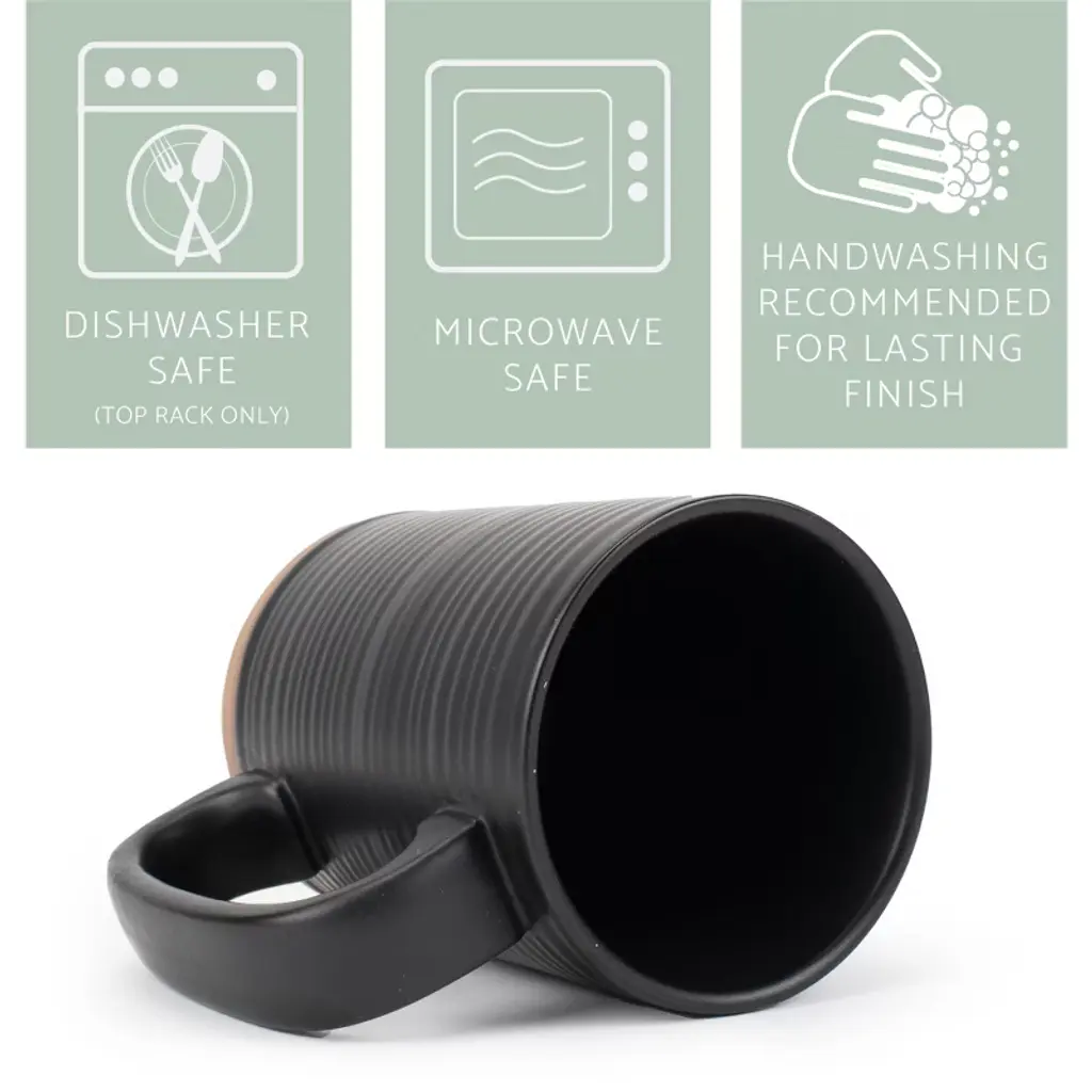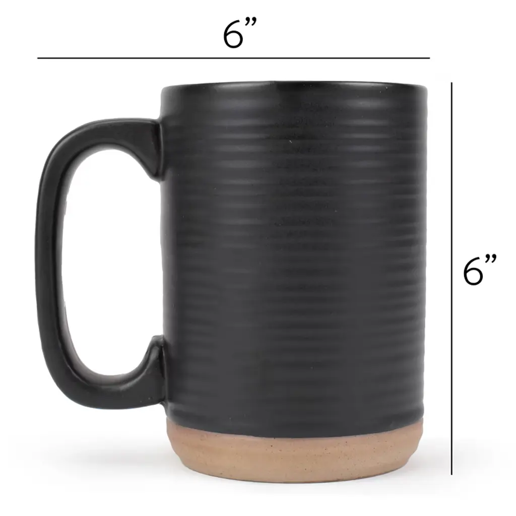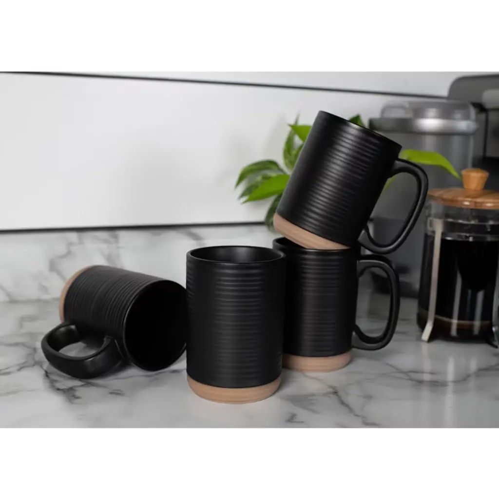 Elanze Designs Tall Ribbed Raw Clay Bottom Black 16 Ounce Ceramic Coffee Mugs Set Of 4