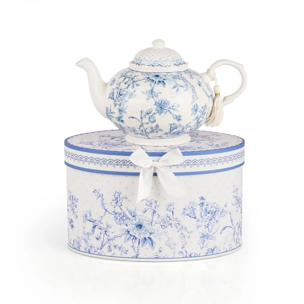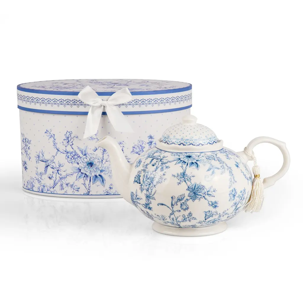 Elegant Blue Flowers 1.1qt Bone China Teapot In Gift Box - 1.14qt - 1.14qt