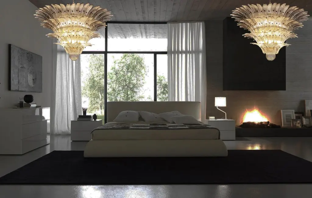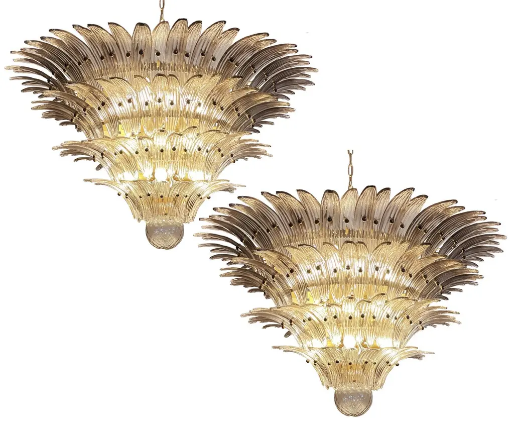 Elegant Palmette Ceiling Light, Smoked Glasses Murano