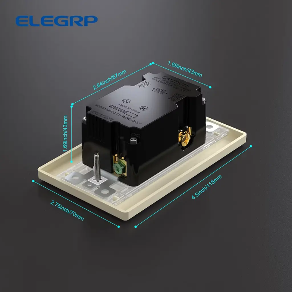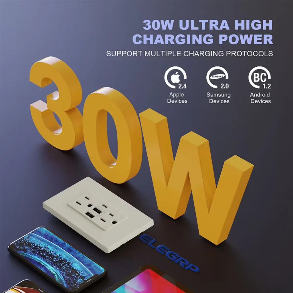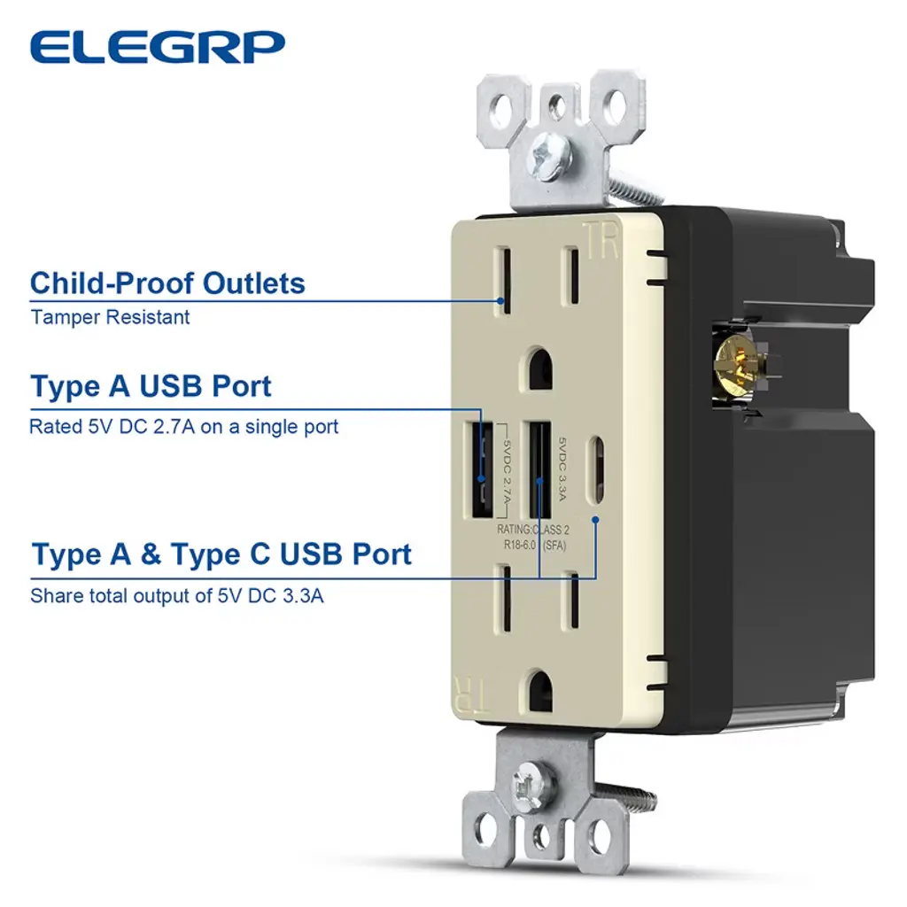 Elegrp 30-watt 15 Amp 3-port Type C And Dual Type A Usb Duplex Usb Wall Outlet, Wall Plate Included, Brown (2-pack)