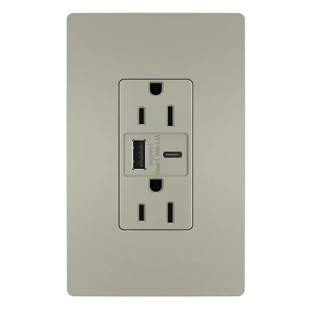 30-Watt 15 Amp 3-Port Type C and Dual Type A USB Duplex USB Wall Outlet, Wall Plate Included