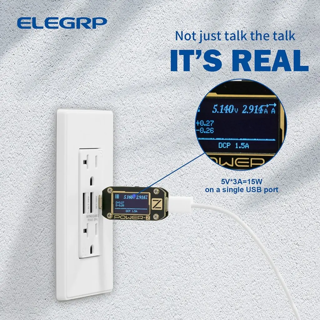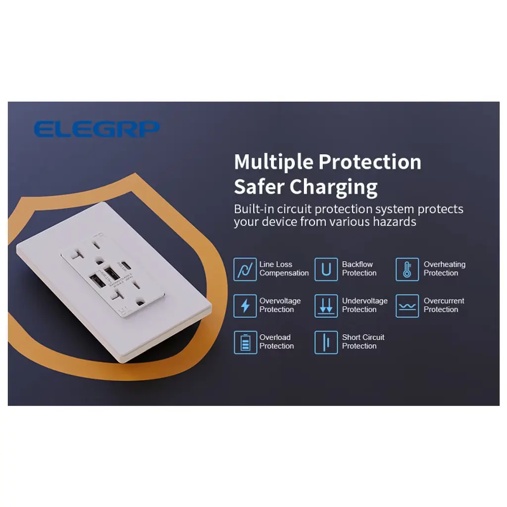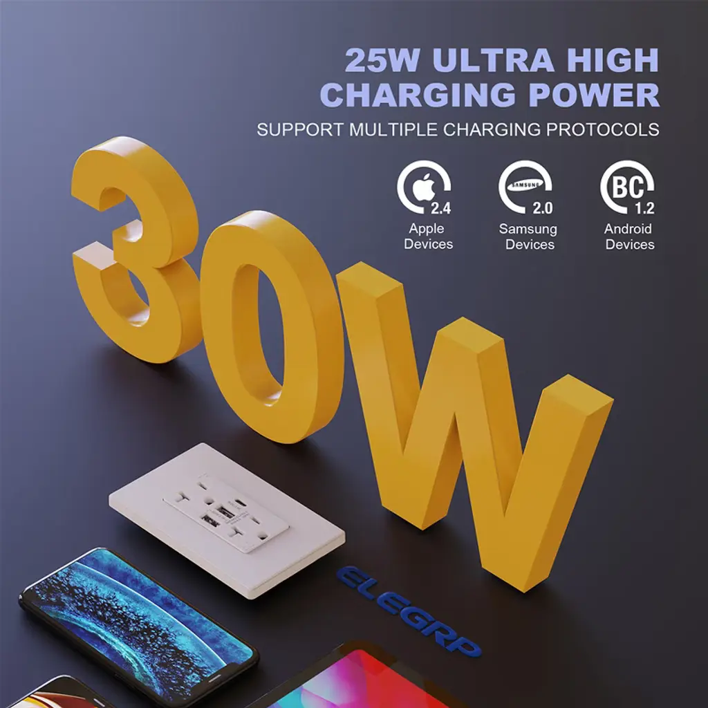 Elegrp 30-watt 20 Amp 3-port Type C And Dual Type A Usb Duplex Wall Outlet, Wall Plate Included, White (2-pack)