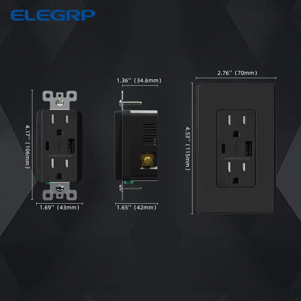 4.2 Amp Type A & Type C USB Charger Wall Outlet, 20 Amp Duplex Tamper Resistant Outlet, with Wall Plate