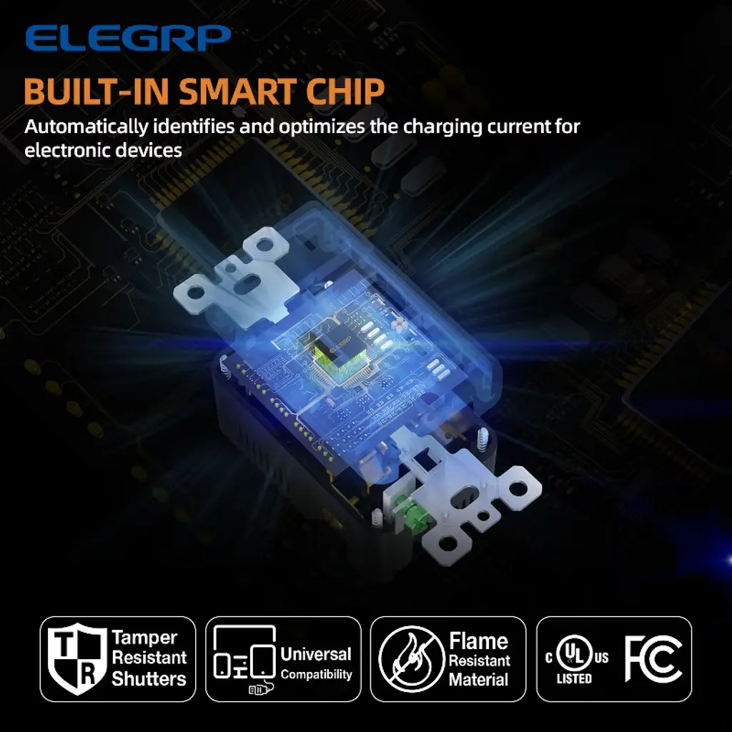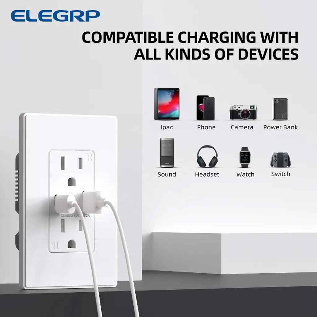Elegrp 4.2 Amp Type A & Type C Usb Charger Wall Outlet, 20 Amp Duplex Tamper Resistant Outlet, With Wall Plate, White(2 Pack)