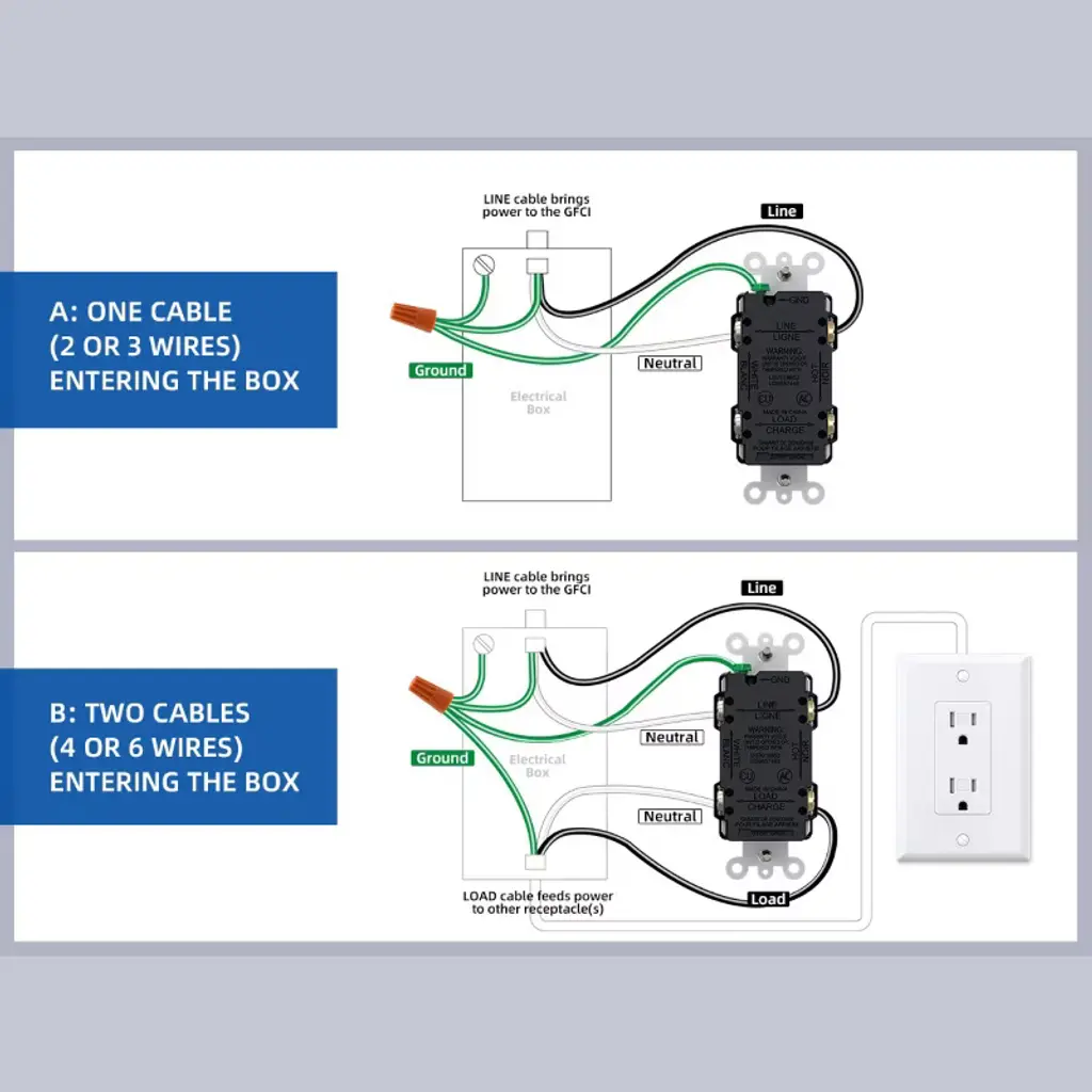 ELEGRP¡¯s ground fault circuit interrupter (GFCI) outlet provides continuous protection from ground faults during its whole life period. The GFCI receptacles conduct an auto-monitor function self-test every five seconds exceeding UL 943 requirements for a frequency of 3 hours. Ultra-compact design leaves more space for other wiring devices for easier and quicker installation in electrical boxes. Miswire protection interrupts power in an event that the GFCI receptacle is miswired by interposing line and load branch circuit supply wiring. The GFCI receptacle will deny power to receptacle face and downstream. Automatic shutter system prevents young children from inserting unwanted objects into the outlets. Our products are UL and CUL Listed, which meets UL standards.
