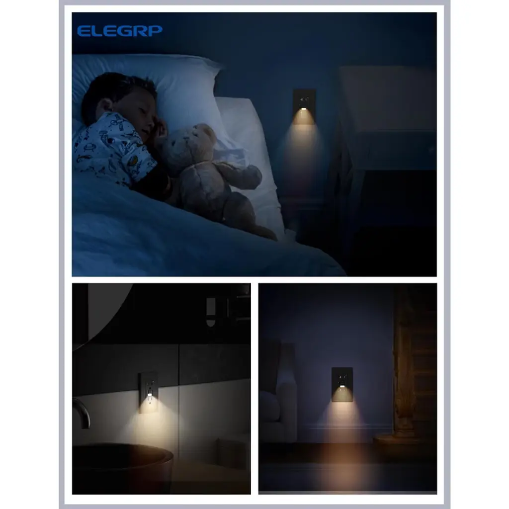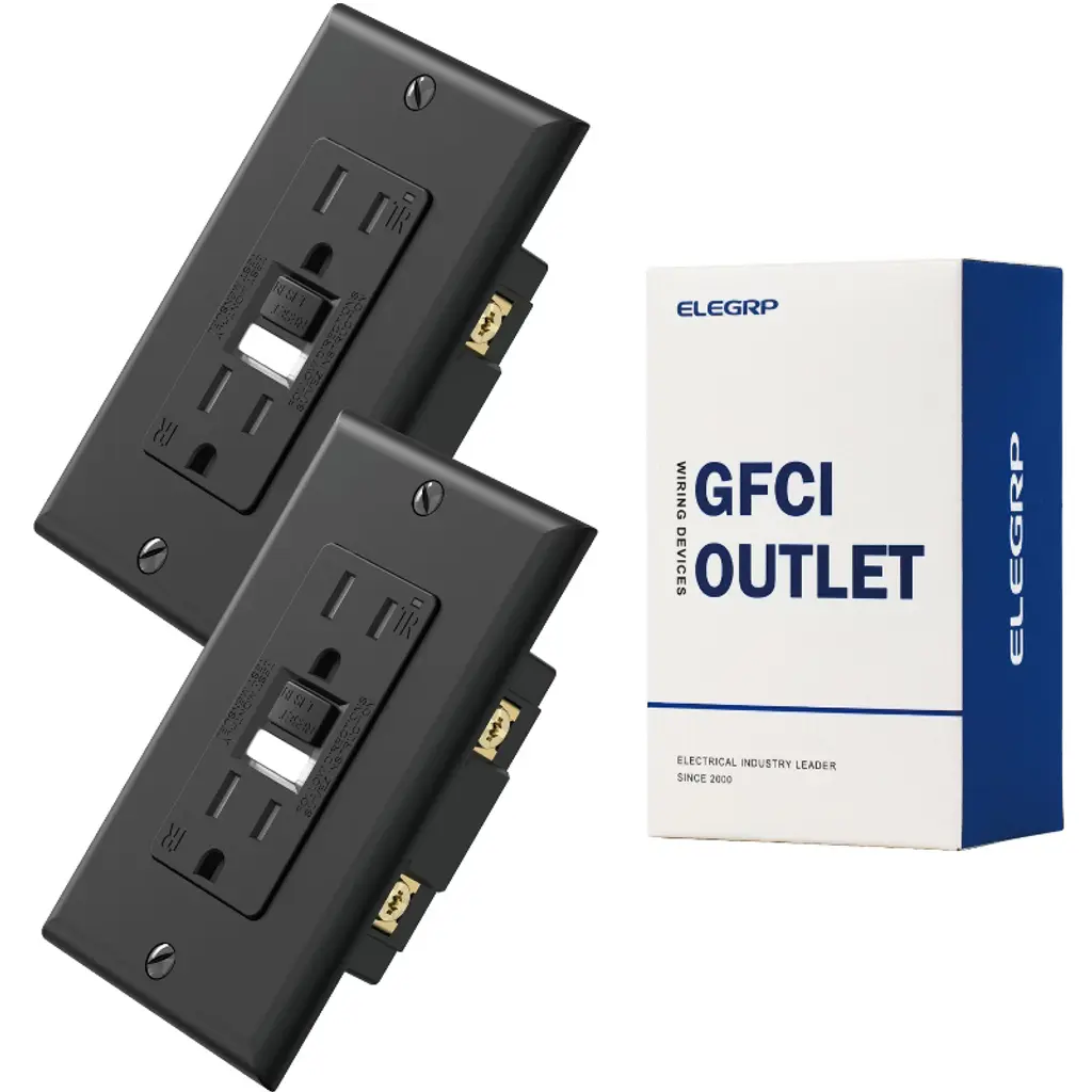 Elegrp Gfci Outlet With Night Light, 20 Amp 125v Tamper Resistant Duplex Wall Outlet,wall Plate Included, Matte Black 1Pc