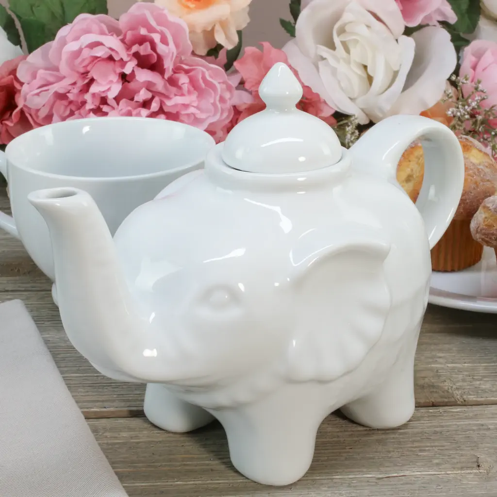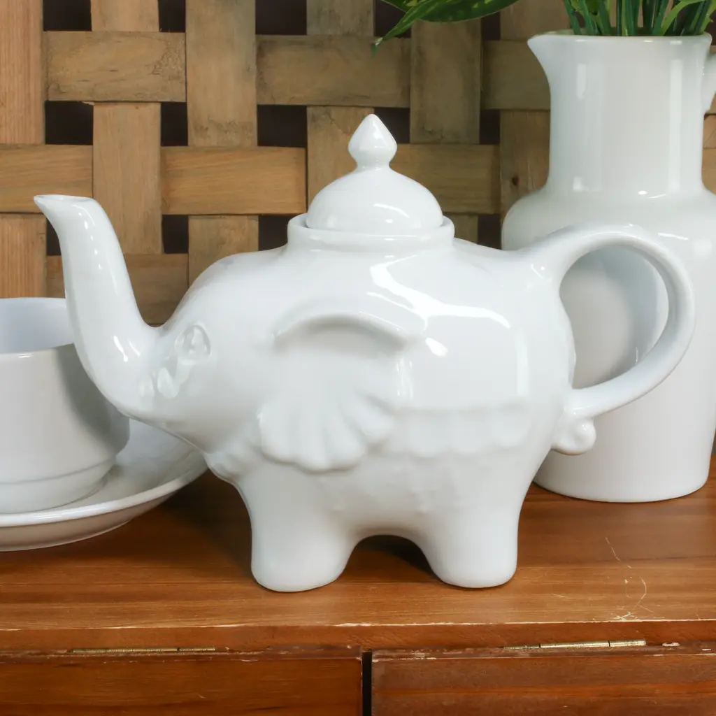 Brew your favorite tea in style with the BIA Cordon Bleu Porcelain Elephant Teapot in classic white, holding a generous 28 oz. capacity. The whimsical elephant-shaped design with wraparound details adds charm to any tea time gathering and is sure to delight your guests. Made of high-quality porcelain, this teapot is microwave and dishwasher safe, making it easy to use and clean for your convenience. Whether it's for casual dining or special occasions, this teapot brings a whimsical ambiance to your table, embodying the perfect blend of fun and functionality. BIA Cordon Bleu: Designed With Modern Sensibility For Wherever You Live, However You Cook, And Whenever You Entertain.