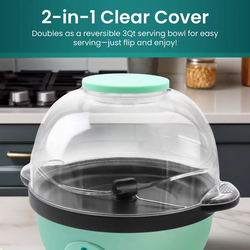 Elite Cuisine 3Qt Hot Oil Stirrer Popcorn Popper With Serving Bowl Lid