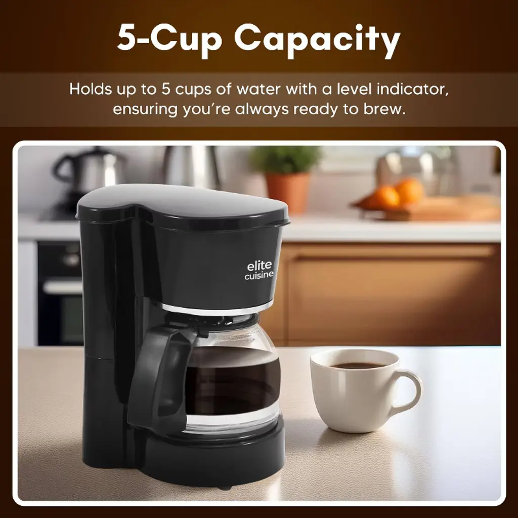 Elite Cuisine 5 Cup Brew & Drip Coffee Maker With Pause & Serve Black