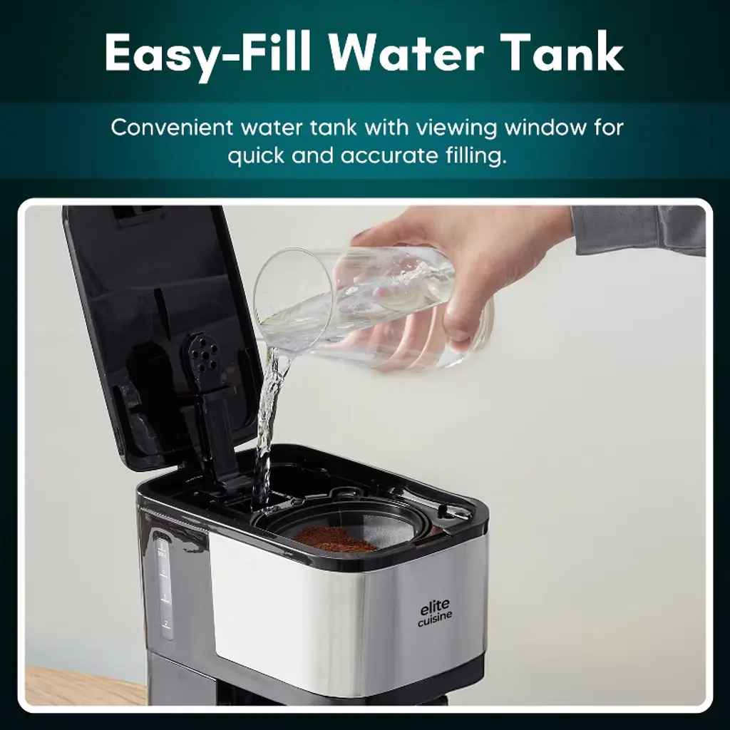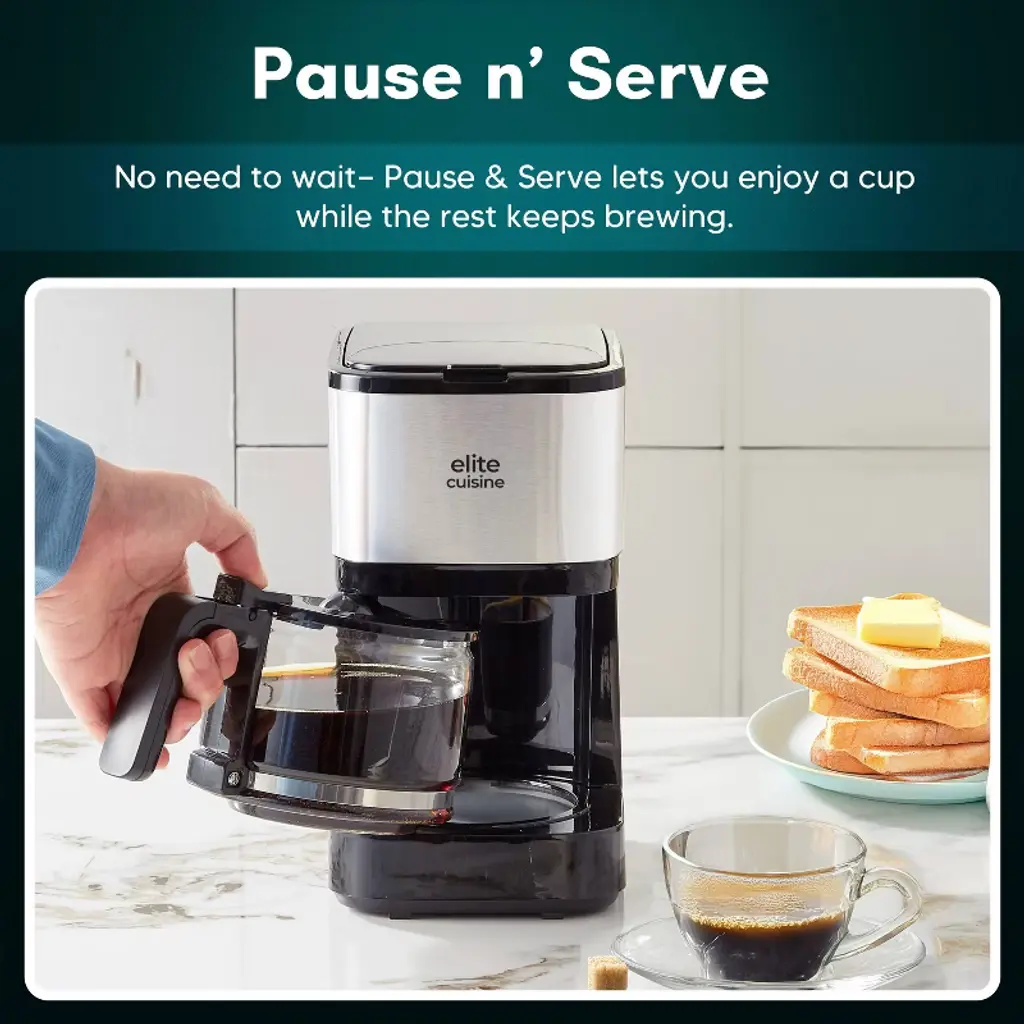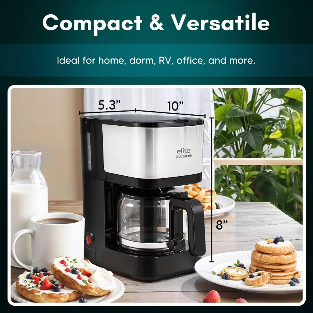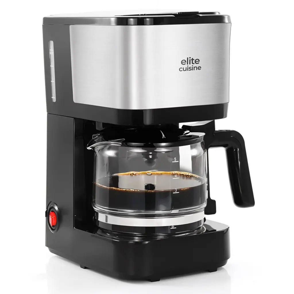 Elite Cuisine 5 Cup Brew & Drip Coffee Maker With Pause & Serve Stainless Steel