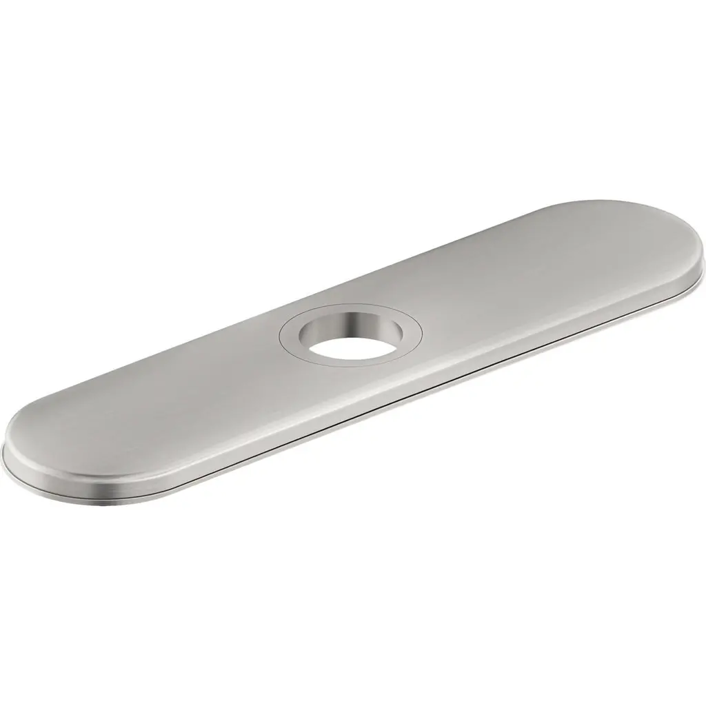 Elkay sink accessories are designed to fit perfectly and coordinate with your Elkay sink. From color matched drains to custom-sized stainless steel sink grids and wood cutting boards, we have what you need. Our accessories make the time at your kitchen, prep, bar or laundry sink more convenient, efficient and effortless.Decorative plate covers 3 faucet holes.