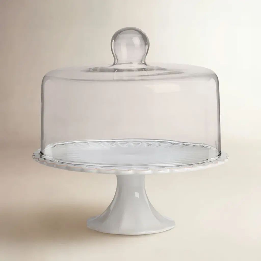 Showcase and serve cakes, pastries, and other desserts atop a doily, under this glass dome. This item ships in 1 carton. Please note that this item is for decorative purposes only and is not food safe. Mango wood cake stand makes a great gift for any occasion. Suitable for indoor use only. This item ships fully assembled in one piece. Made in india. This is a single brown colored cake plate. Farmhouse style.