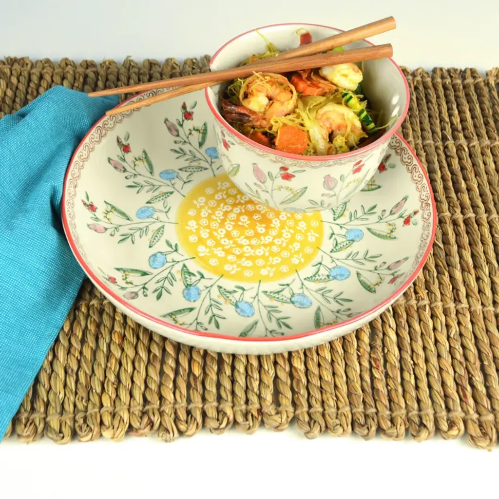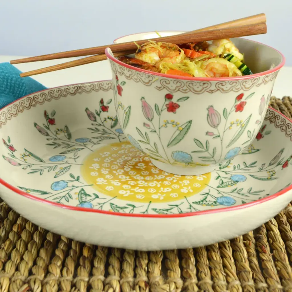 Enjoy a steaming bowl of ramen with our stylish bowls, designed with a unique floral pattern and colorful rim. Crafted for convenience, these bowls are microwave and dishwasher safe, making them perfect for busy weeknights or casual dining.