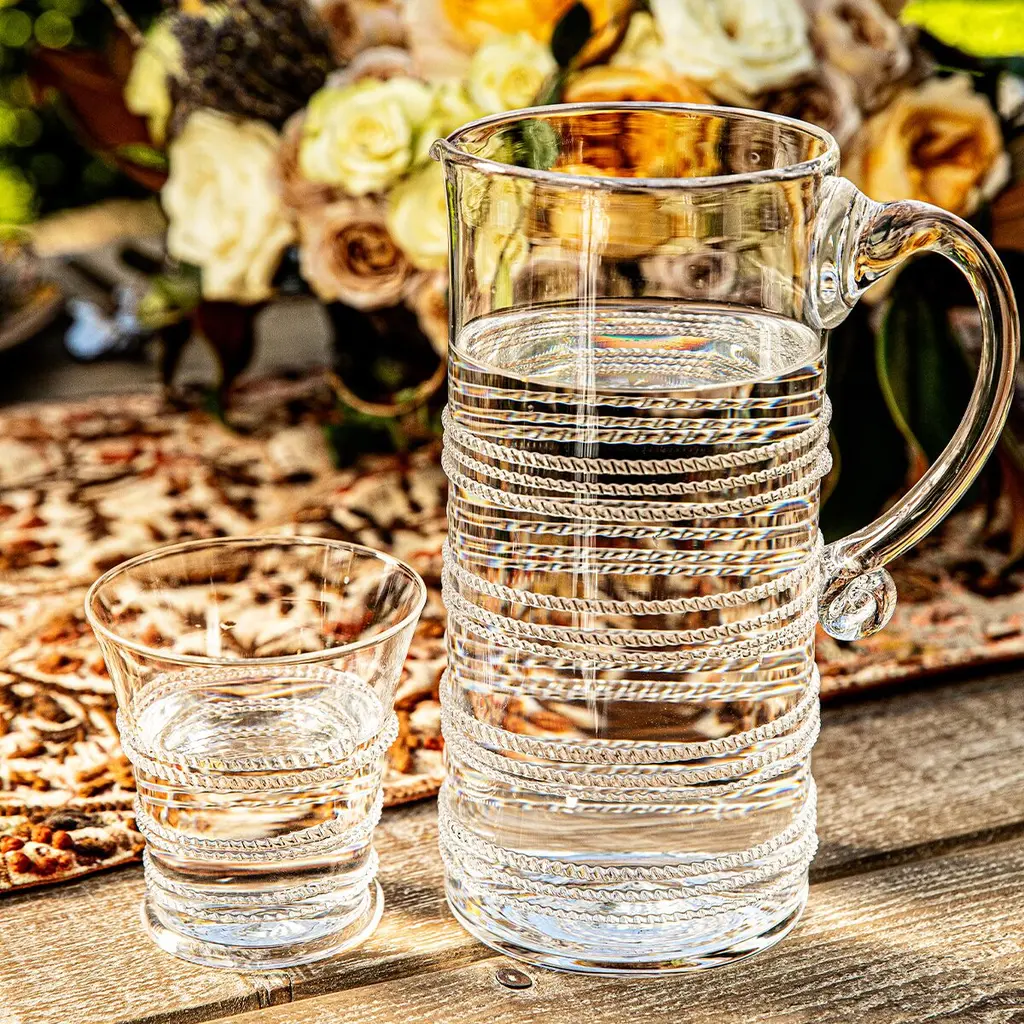 Pitchers are for serving a crowd, and no party would be complete without this stunning vessel that adds a heavy pour of glamour to any party. With its jewelry-like spiraling thread that catches the light and brings the sparkle to every sip, this fabulous piece can be used for everything from iced tea to batch cocktails to flower arrangements.