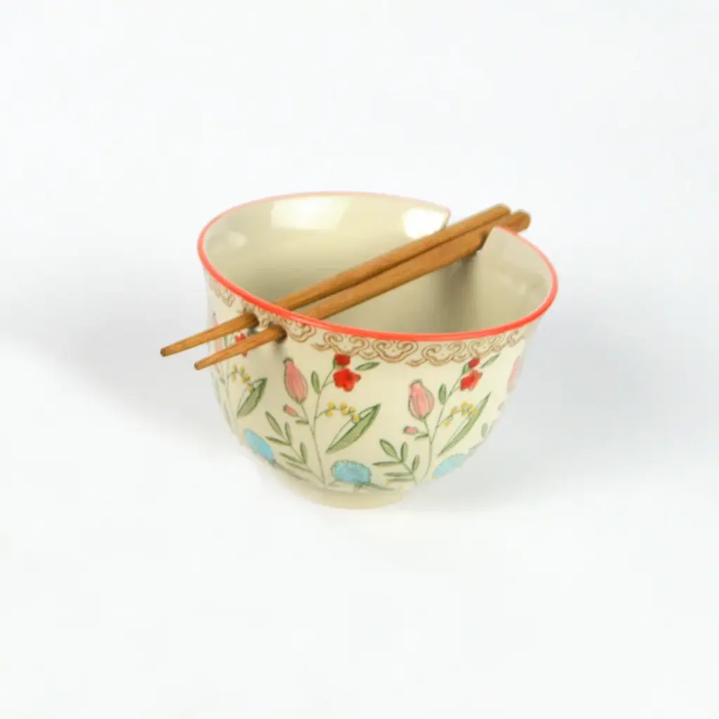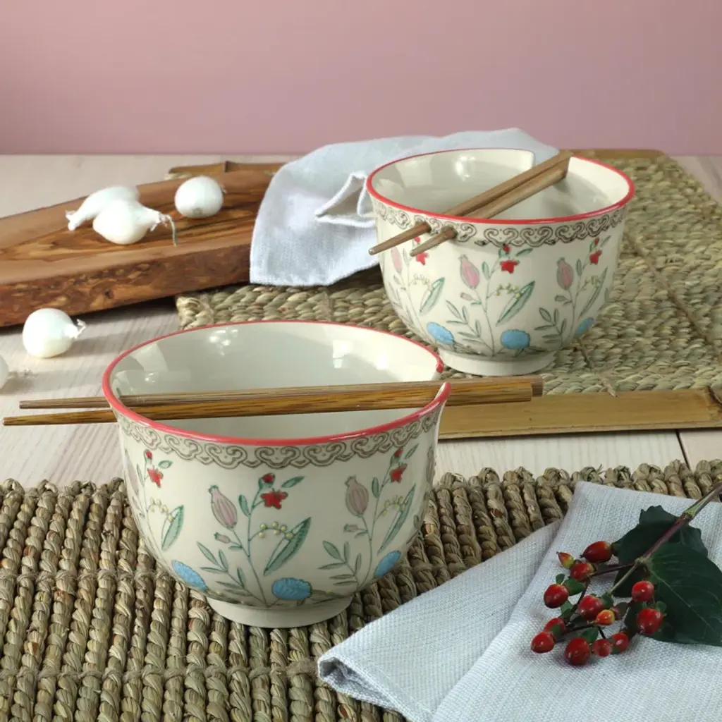 Ella Ramen Bowls Set With Chopsticks |Red | Service For 2