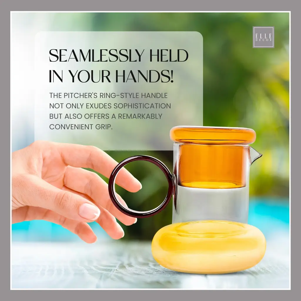 Elle Decor Ring Pitcher Set Carafe And Water Drinking Glass Lid - 23-Ounce