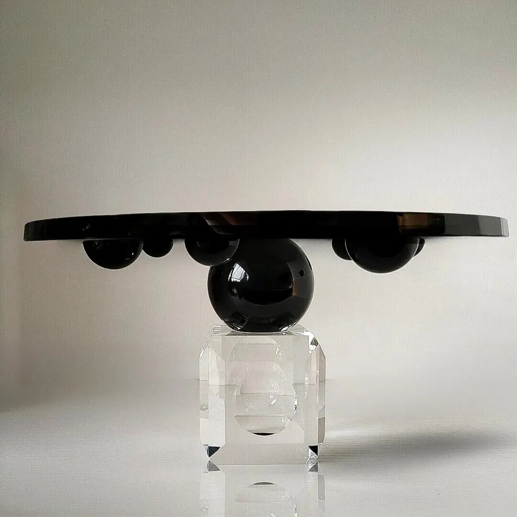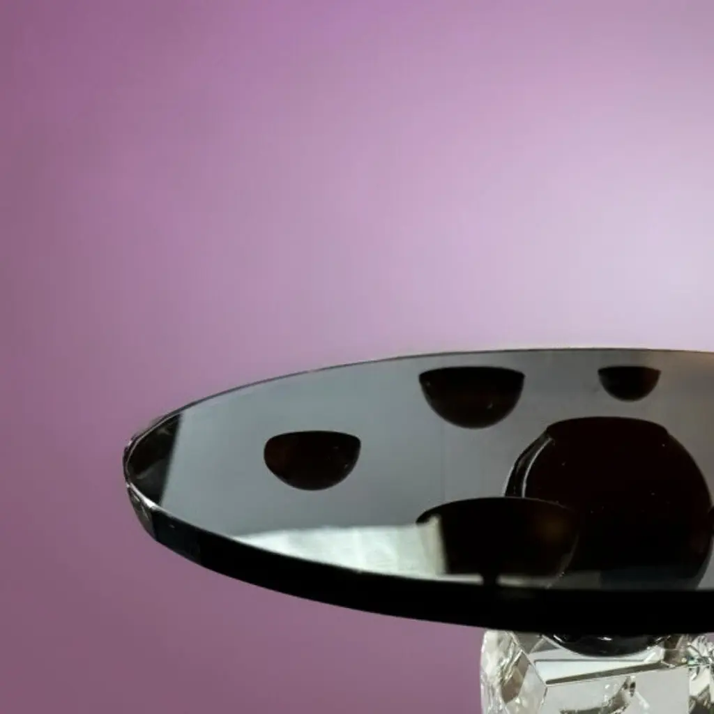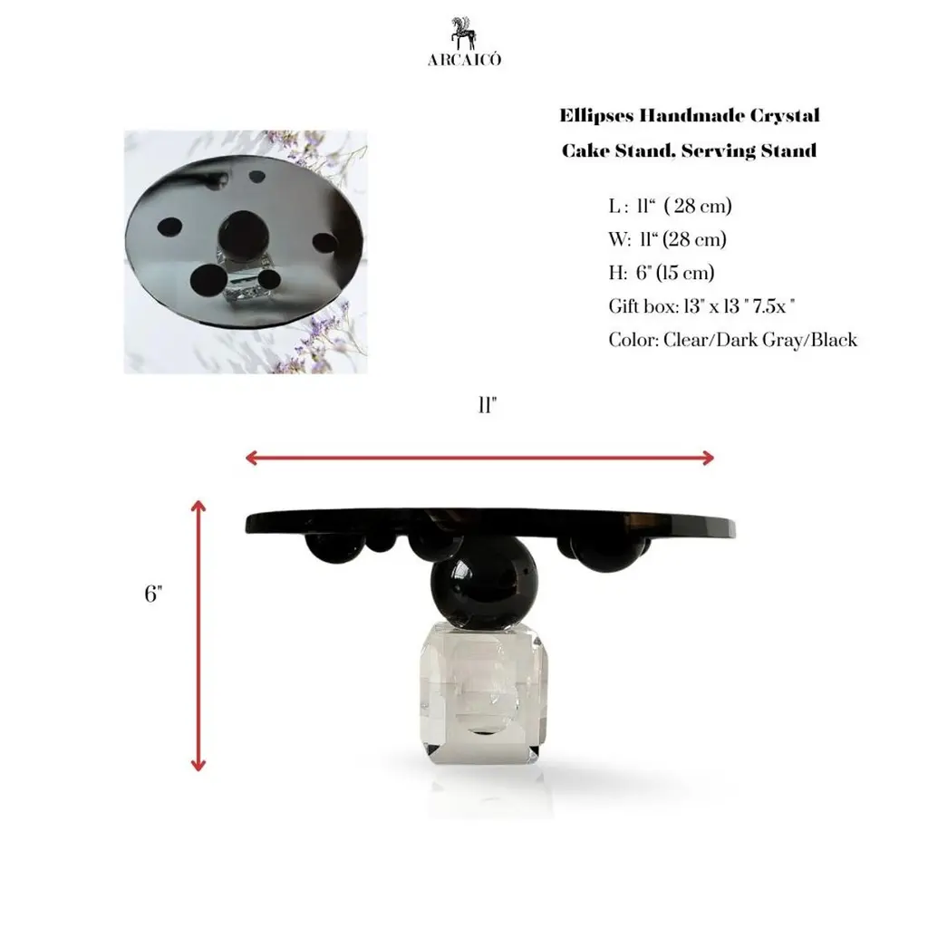 Ellipses Handmade Crystal Cake Stand – Modern Black & Clear Crystal Dessert Display for Weddings, Birthdays, and Elegant EntertainingThe Ellipses Handmade Crystal Cake Stand is a luxury modern serving piece, expertly crafted from premium black and clear crystal. Featuring a sleek elliptical design, this striking crystal dessert stand adds a bold and contemporary touch to any dining table, buffet, or event display. Its unique shape and high-contrast color palette make it an eye-catching centerpiece for both everyday use and formal occasions.This modern crystal cake stand is ideal for presenting cakes, cupcakes, pastries, and gourmet desserts at weddings, birthdays, holiday parties, and upscale dinners. The deep black crystal base provides stability and weight, while the elevated clear crystal surface highlights your culinary creations with elegance and clarity.As part of the ARCAICÓ artisan crystal collection, the Ellipses stand is handcrafted by skilled artisans, making each piece a unique blend of timeless craftsmanship and modern design. It serves as a stylish tabletop accessory, a functional cake display, and a statement piece of art glass serveware.Whether you're styling a dessert table, hosting a celebration, or looking for the perfect Christmas gift, housewarming gift, or wedding present, this handmade crystal cake stand is sure to impress.