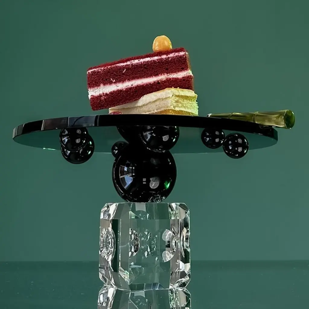Ellipses Black & Clear Handmade Crystal Cake Stand – Elegant Serving Piece