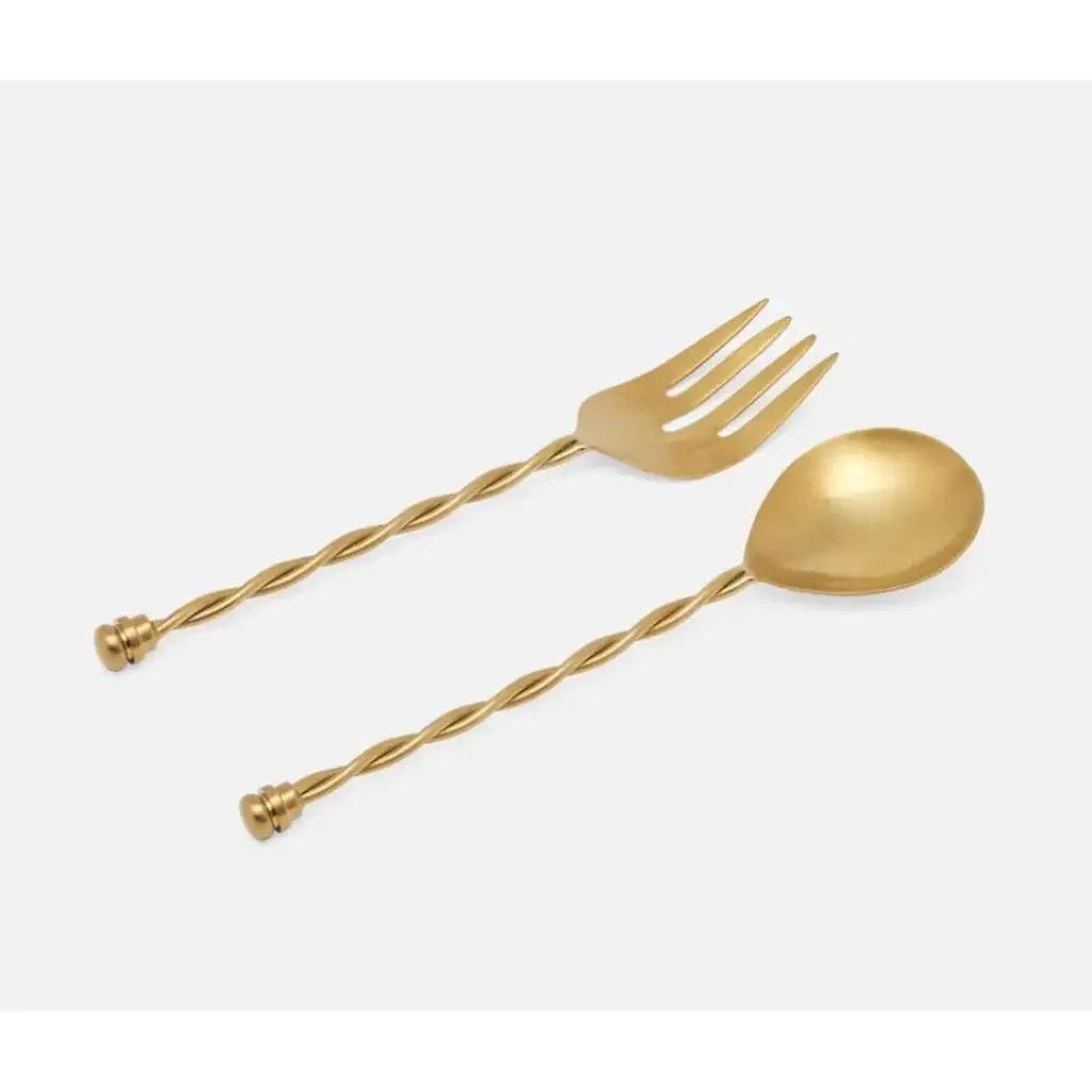 Ellis Matte Gold Serving Set, 2-Piece Set: Serving Spoon, Serving Fork