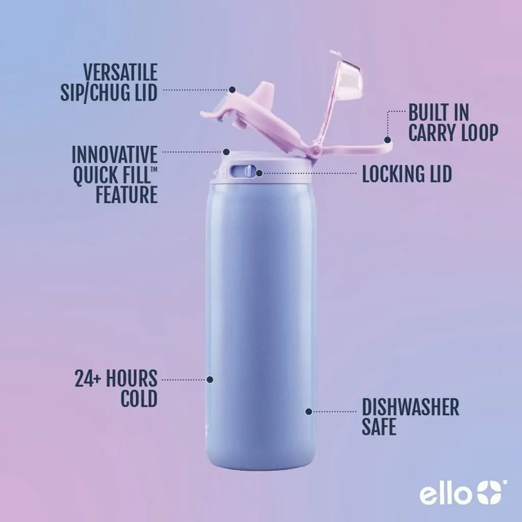 Ello Pop & Fill 18oz Stainless Steel Water Bottle Purple Holographic Glitter