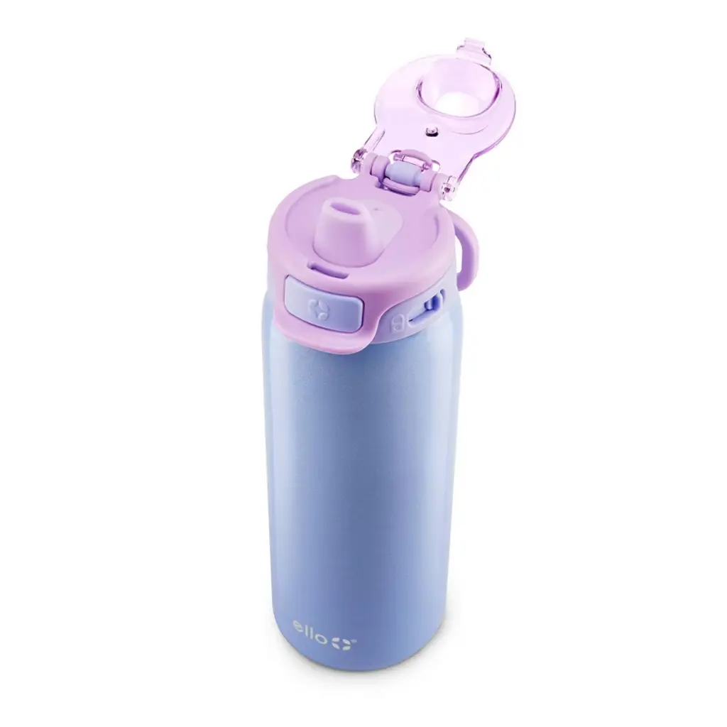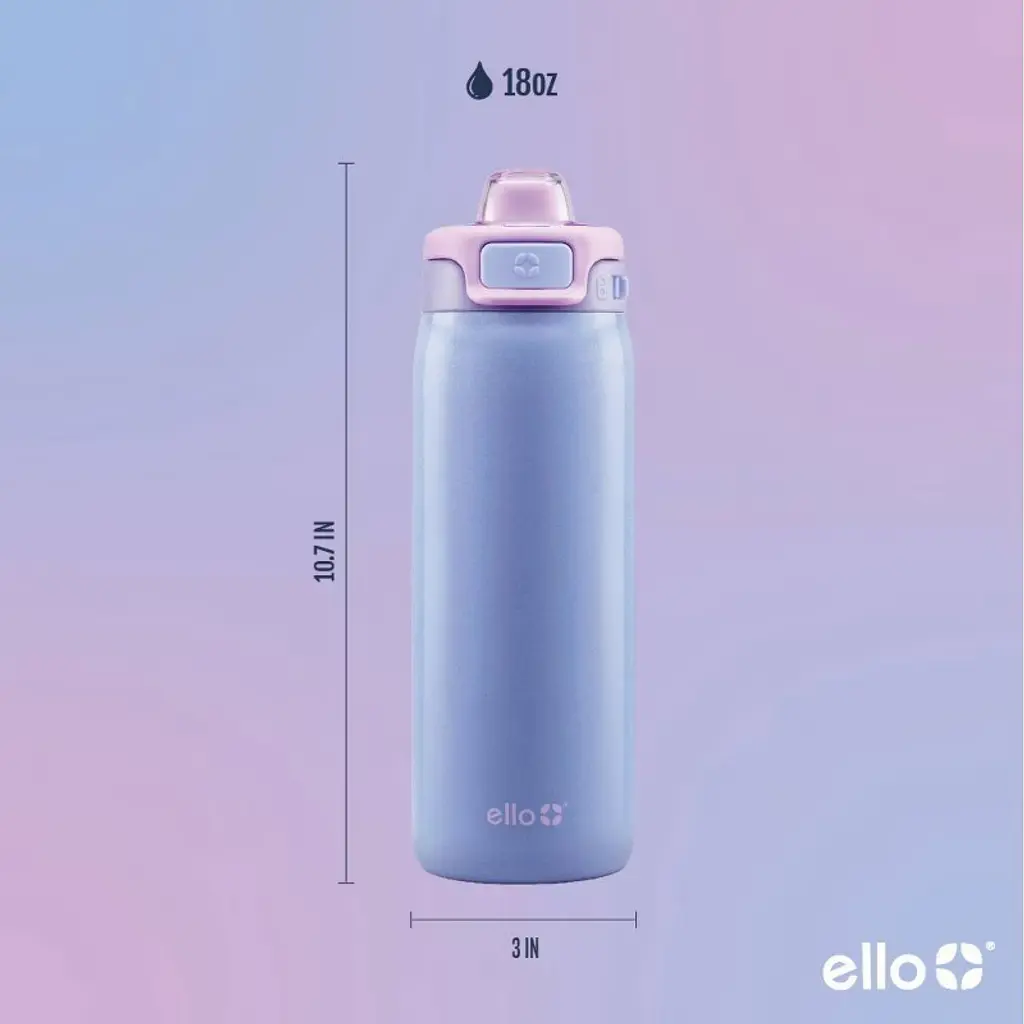 Meet the Ello Pop & Fill 18oz Kids Water Bottle! The perfect sidekick for busy days, school lunches, and playground adventures! This double wall stainless steel bottle keeps drinks cold for up to 20 hours. No more warm water at recess. The easy push button lid pops open in a flash for quick sips or fast refills, and the leak-proof lock means no messy backpack spills. Kids can sip or chug thanks to the soft silicone spout and built-in straw. It’s totally their choice! And cleanup? Super simple! Every piece is top-rack dishwasher safe, so it’s ready for tomorrow in no time. BPA-free and built tough, Pop & Fill is a cool, eco-friendly way to stay hydrated wherever the day takes you. Not for hot drinks.