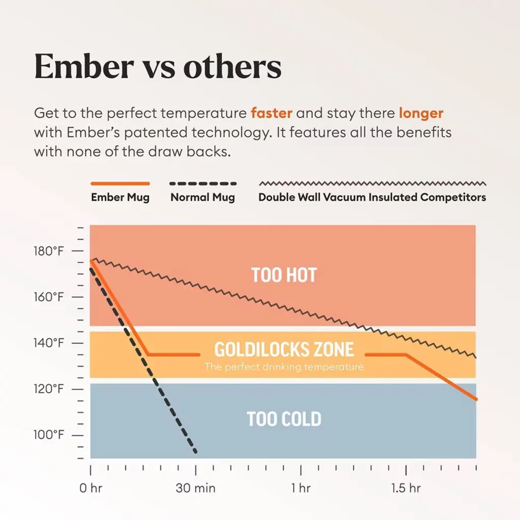 The new Ember Mug²: Metallic Collection features three brilliant hues perfect for any occasion. Whether you are at your desk or sipping by the fire, Ember Mug² in Copper, Gold and Stainless Steel will make every morning shine by allowing you to set your precise drinking temperature and maintain it for approximately 1.5 hours, so your hot beverage is perfect from the first sip to the last drop.