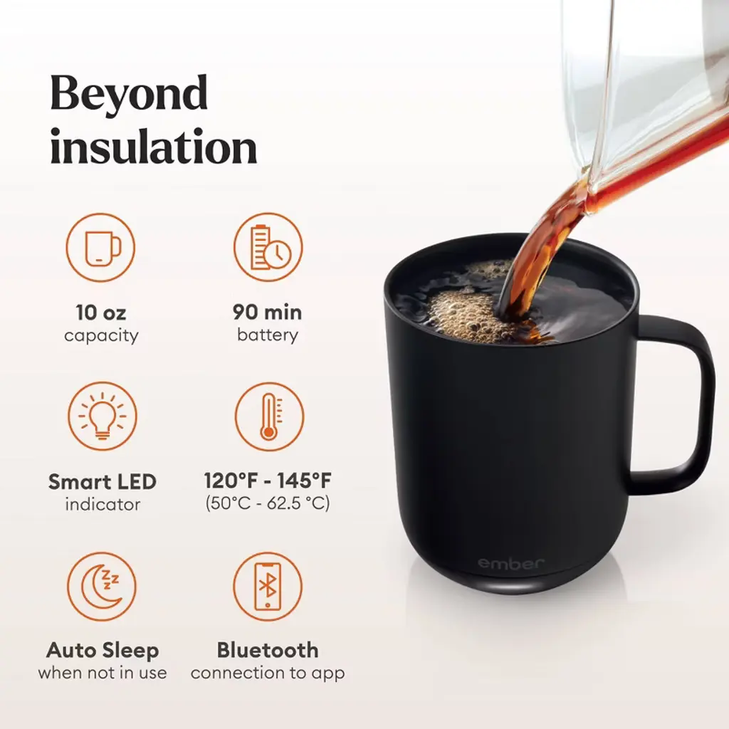 The new Ember Mug²: Metallic Collection features three brilliant hues perfect for any occasion. Whether you are at your desk or sipping by the fire, Ember Mug² in Copper, Gold and Stainless Steel will make every morning shine by allowing you to set your precise drinking temperature and maintain it for approximately 1.5 hours, so your hot beverage is perfect from the first sip to the last drop.