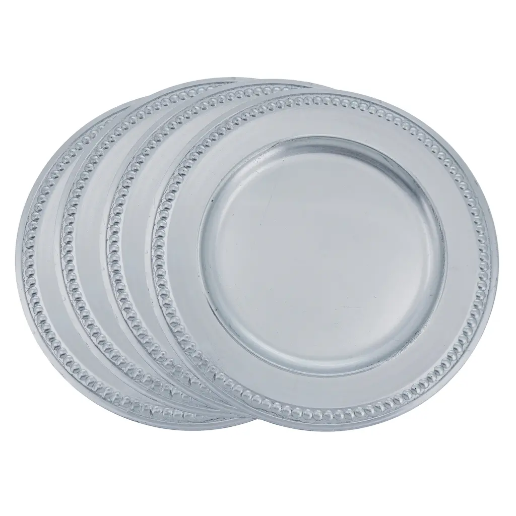 Embossed Bead Border Design Charger Plate - Set Of 4 Pcs - Gold