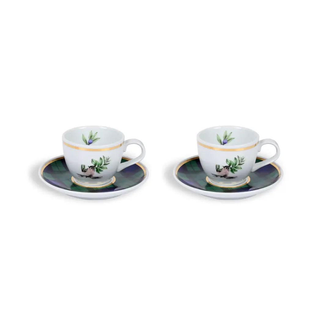 Emerald Check Espresso Cup & Saucer Set