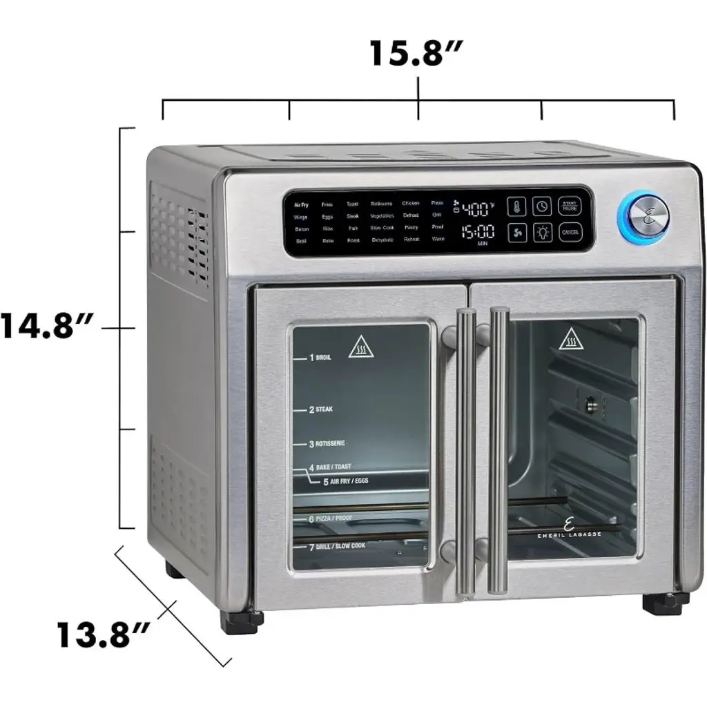 Emeril Lagasse Extra Large French Door Air Fryer Toaster Oven Combo, 25 Cooking Functions W/ Digital Controls, 7 Accessories, Stainless Steel Finish