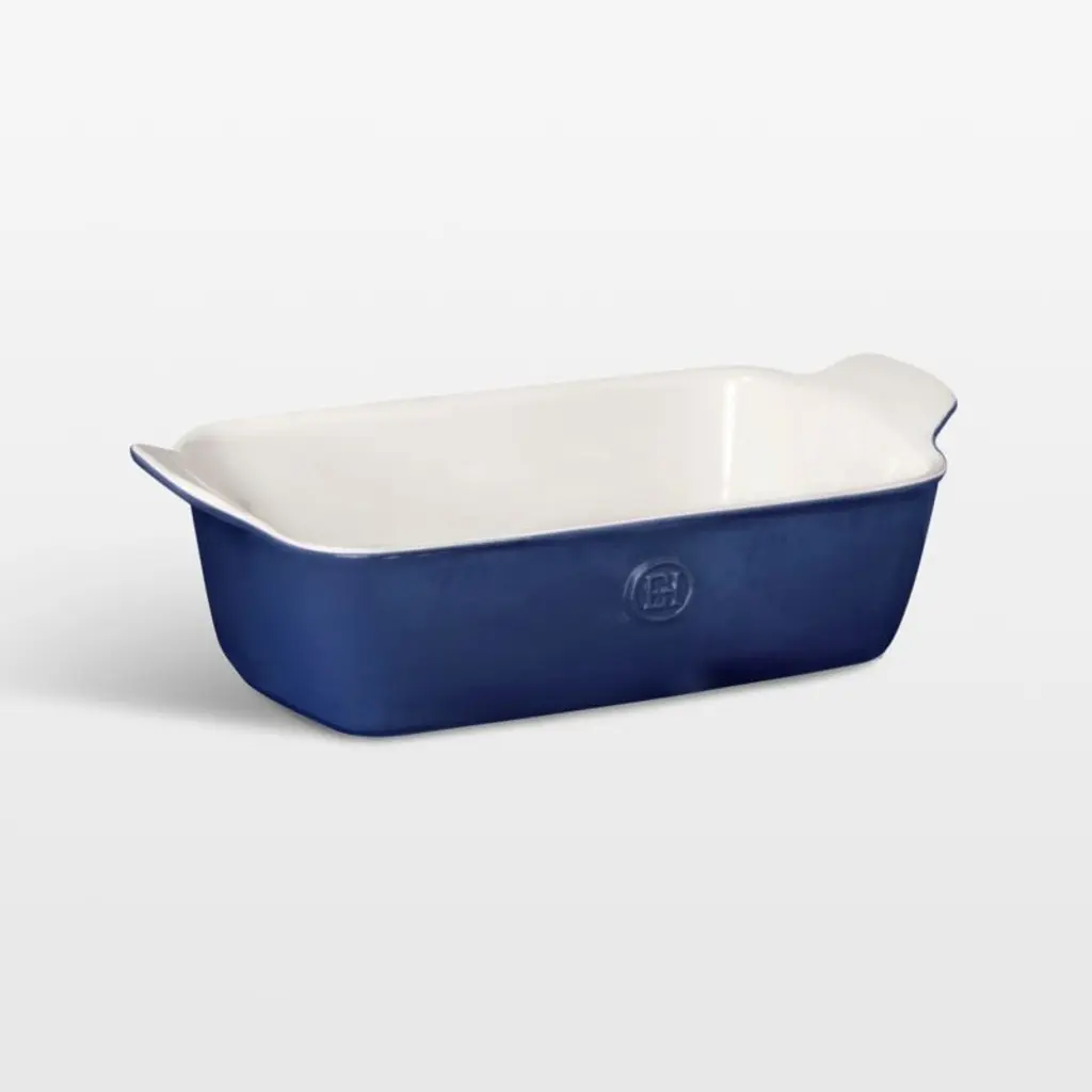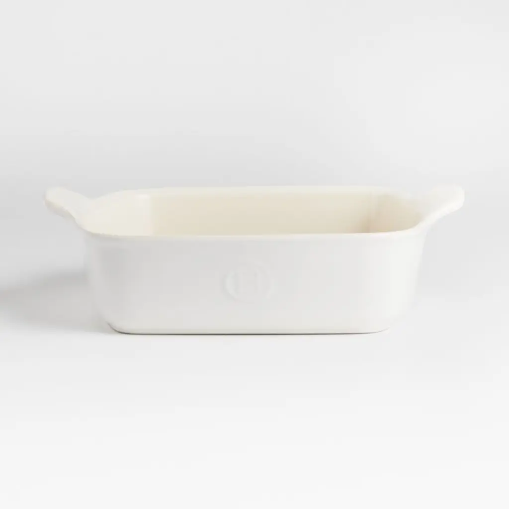 Crafted of Burgundy clay, this loaf pan from Emile Henry is renowned for its superior heat retention. The glaze resists chipping, cracking and thermal shock and coats the baking dish in bright white. Handles integrated into the classic design offer a convenient assist when taking the pan out of the oven or serving. Embossed with the company logo on the side, the loaf pan makes an extra-special gift for the baker in your life.Founded in 1850 in France, Emile Henry ceramics embrace modern technology to deliver products that can withstand high oven cooking temperatures, absorbing, distributing and retaining heat evenly.