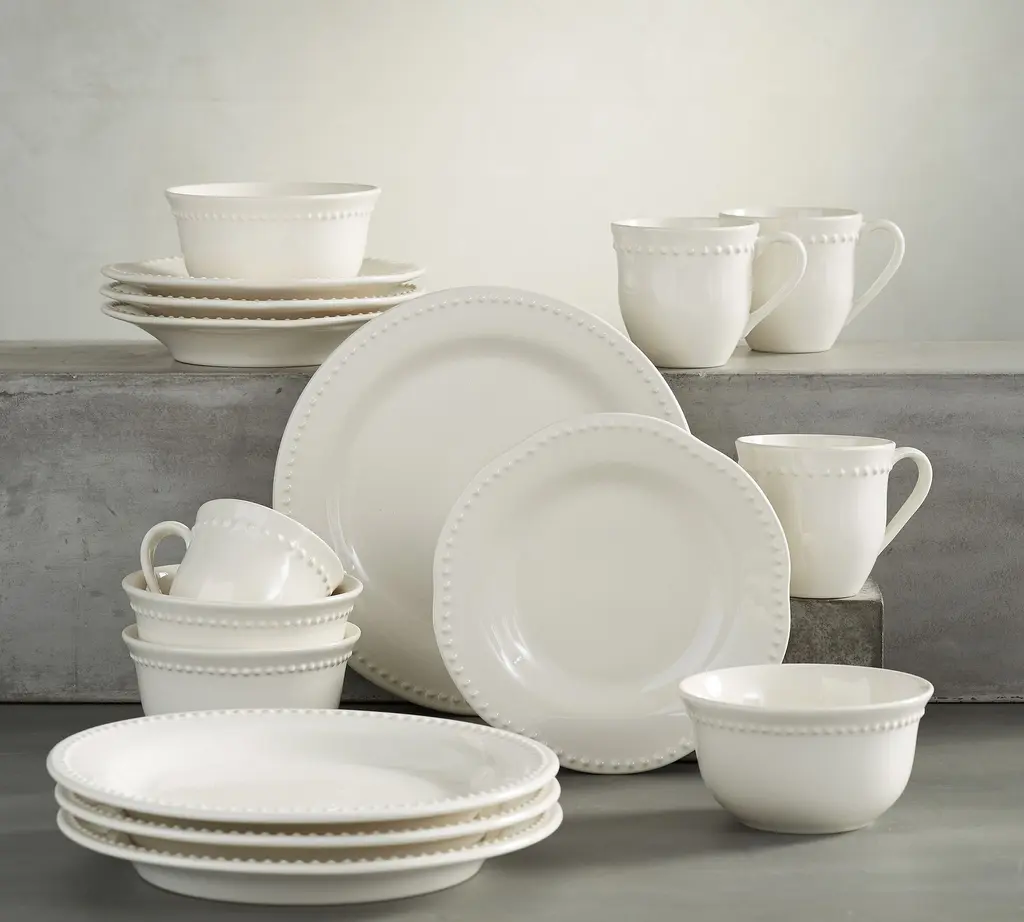 The beaded detail of our Emma Dinnerware evokes the look of an antique set. Beautiful for entertaining yet casual enough for everyday use, each piece in this collection will grace your table in style.