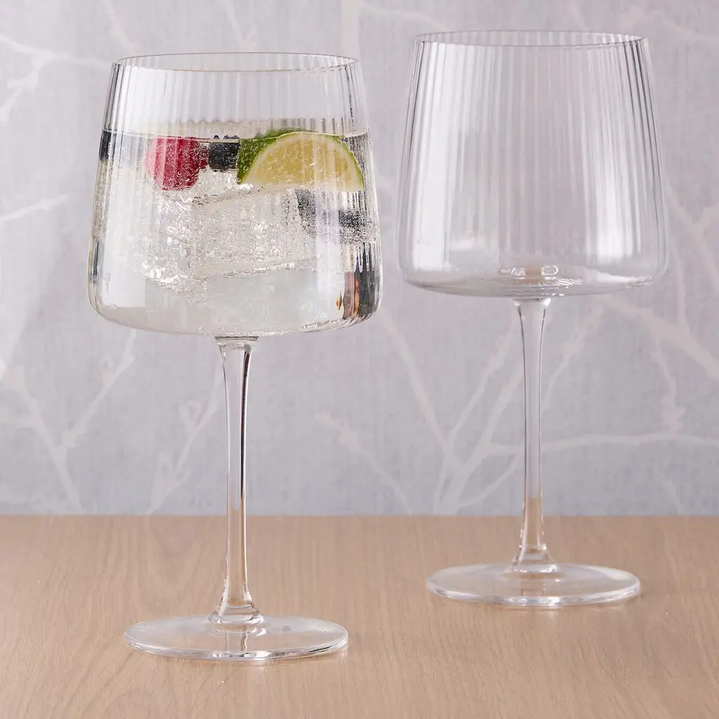 Experience gin like never before with Empire gin glasses. Handcrafted by skilled artisans, each glass has a contemporary shape with a flat base, rounded corners, and tapered sides. The fine optic running up and down the bowl adds a touch of sophistication. Packaged in a smart gift box, this range includes a full suite of glassware to cater to all your entertaining needs.