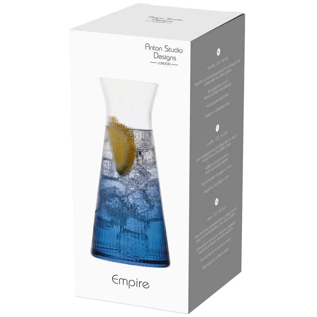 Pour out your water in style with the Empire Water Carafe from Empire Collection. With its contemporary shape and style, paired with its fine optic design, this carafe is great for water, juices, milk and even doubles up as a slender vase. Mouth blown and handmade by skilled craftsmen, this carafe is smartly gift-boxed and makes for a perfect addition to your barware collection. Hand wash recommended.