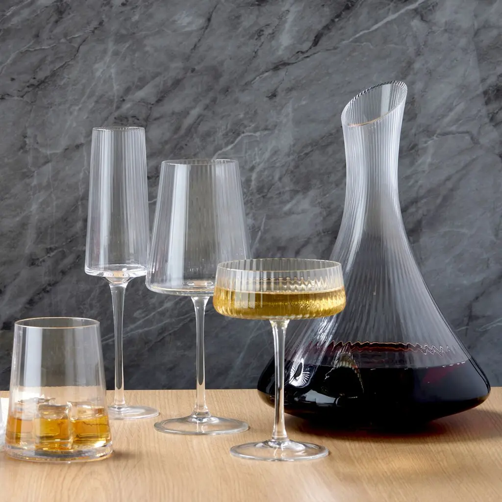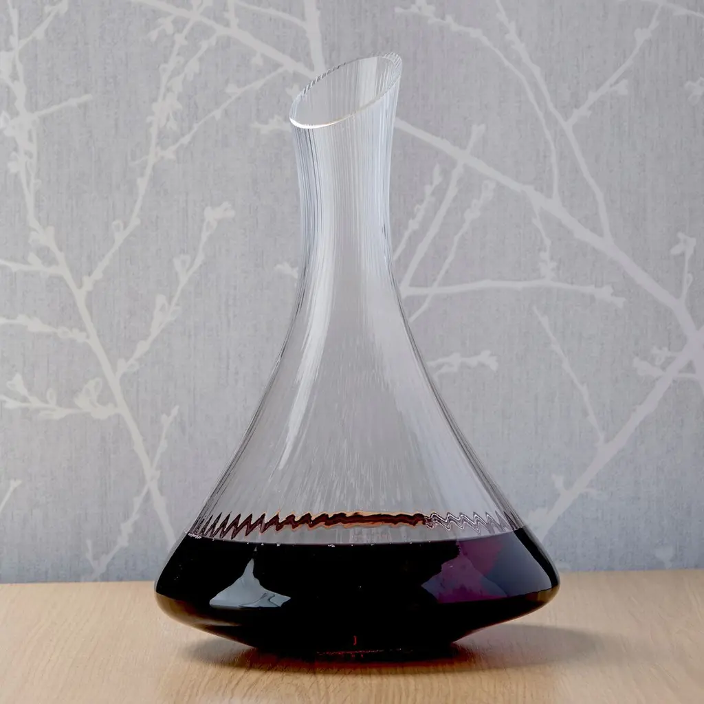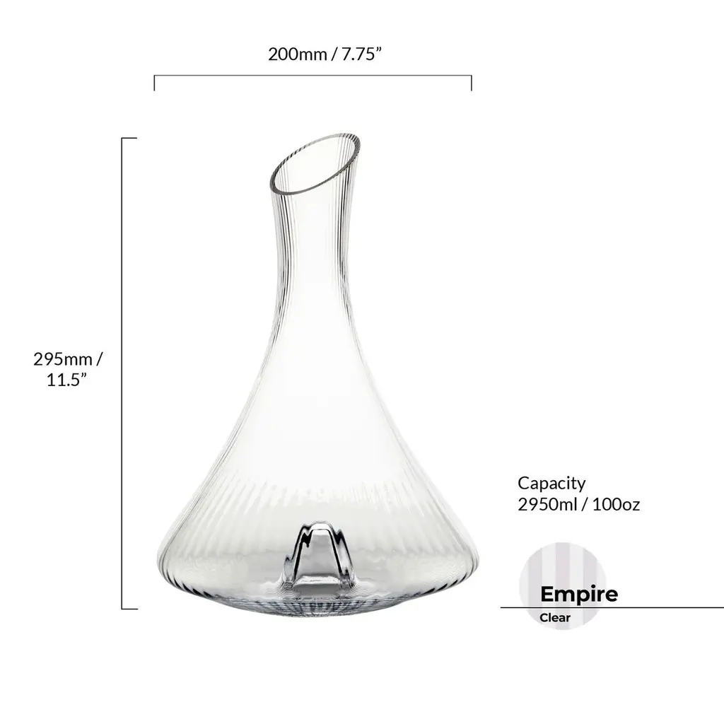 Serve your wine in style with the Empire Wine Carafe from Empire Collection. This carafe features a contemporary-shaped bowl with rounded corners and a fine optic design, coupled with a tall and elegant structure. Mouth blown and handmade by skilled craftsmen, this carafe is smartly gift-boxed and makes for a perfect addition to your barware collection. Hand wash recommended.